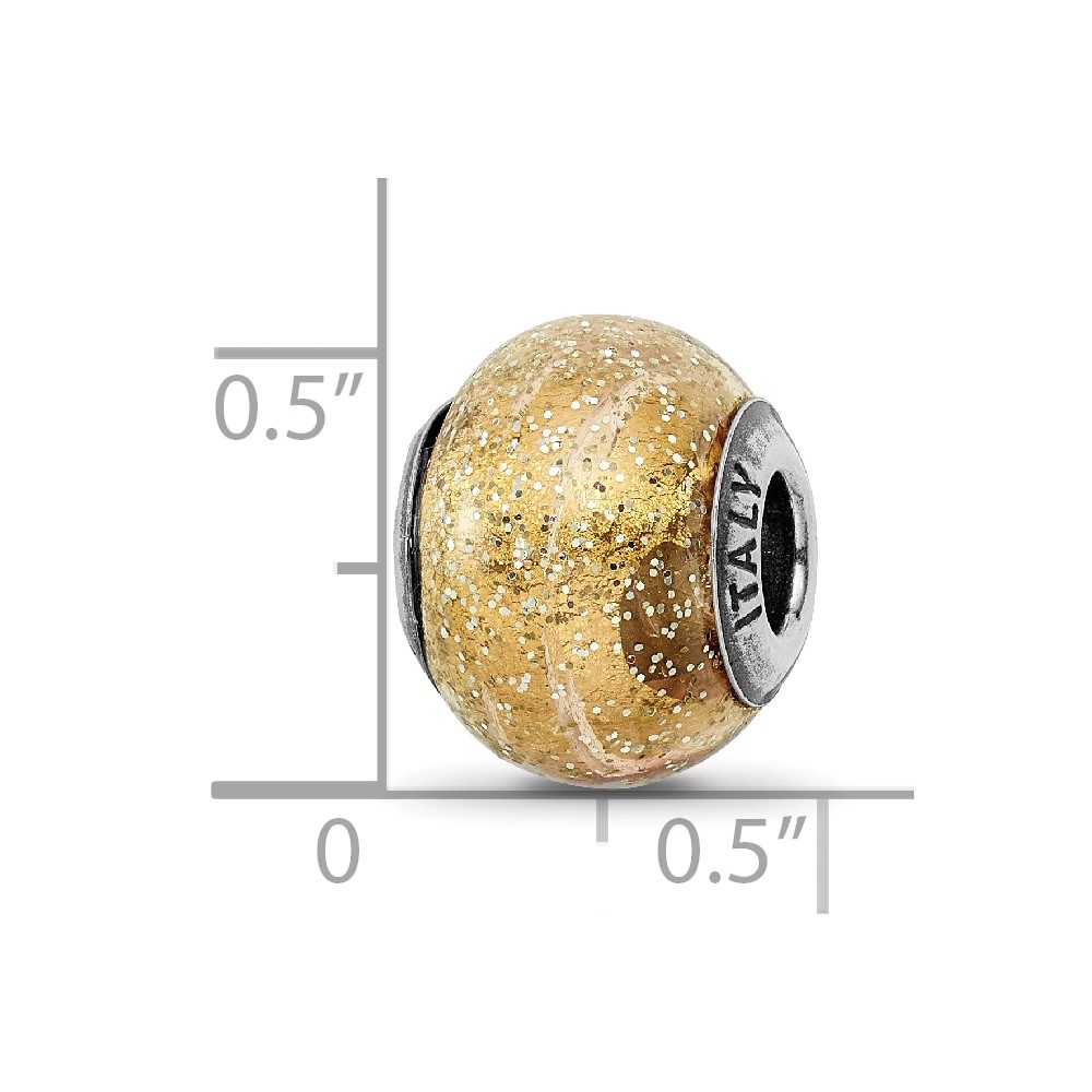 Sterling Silver Reflections Italian Dark Yellow w/Glitter Glass Bead