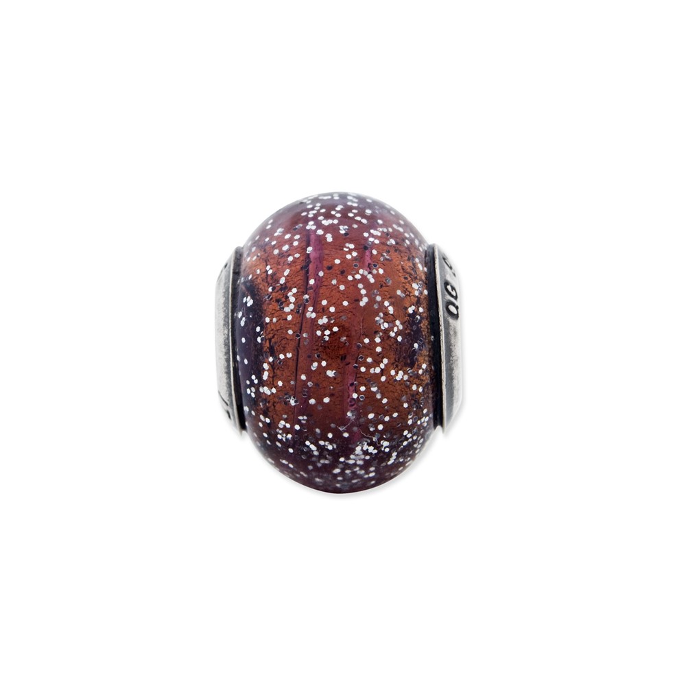 Sterling Silver Reflections Italian Light Brown w/Silver Glitter Glass Bead
