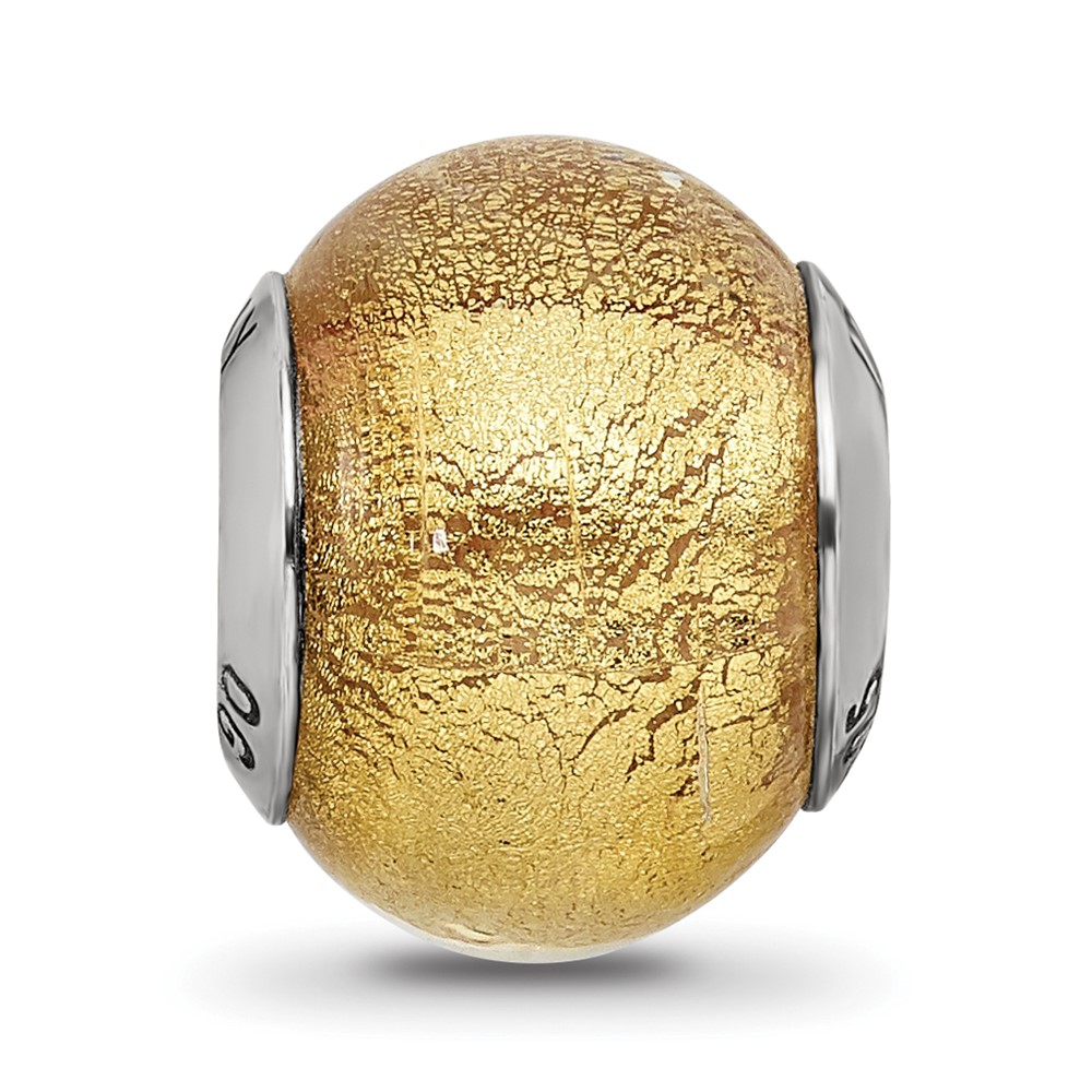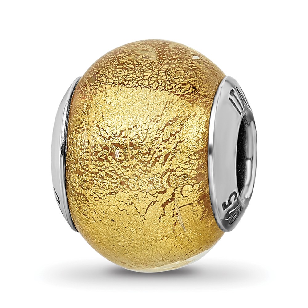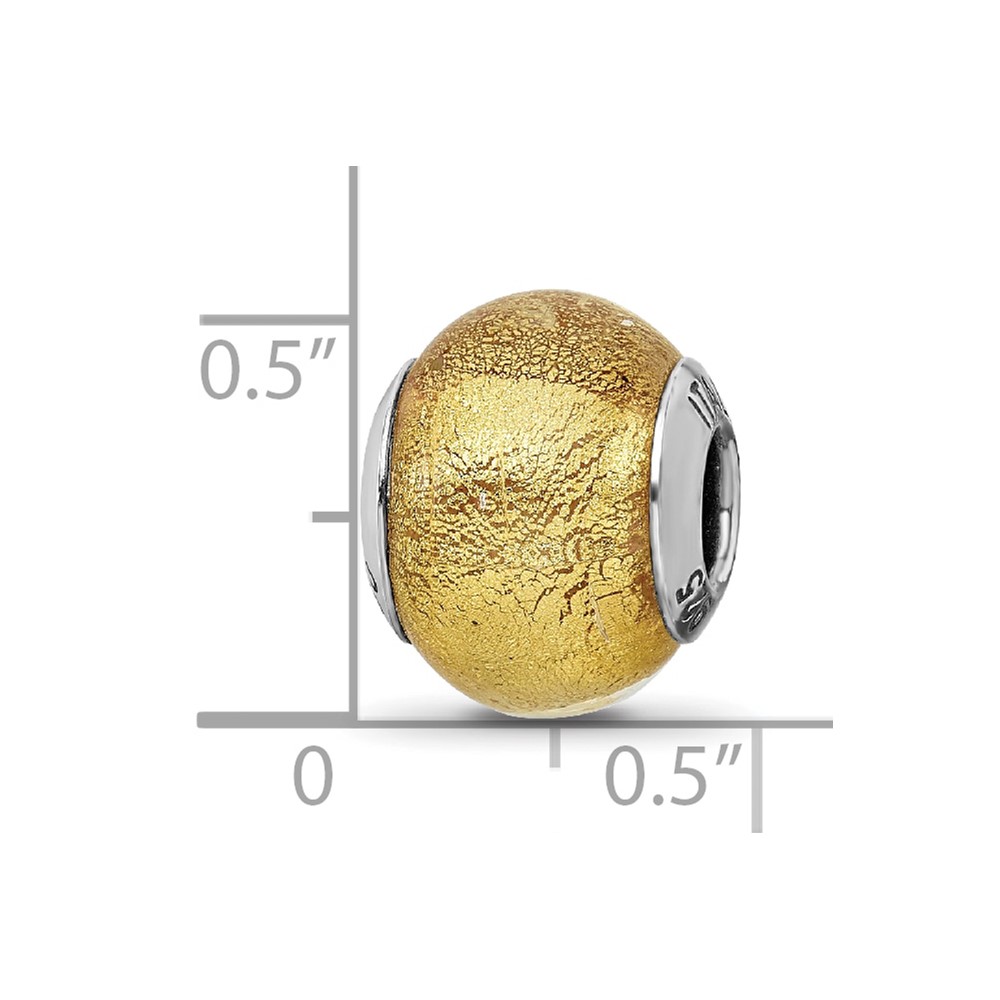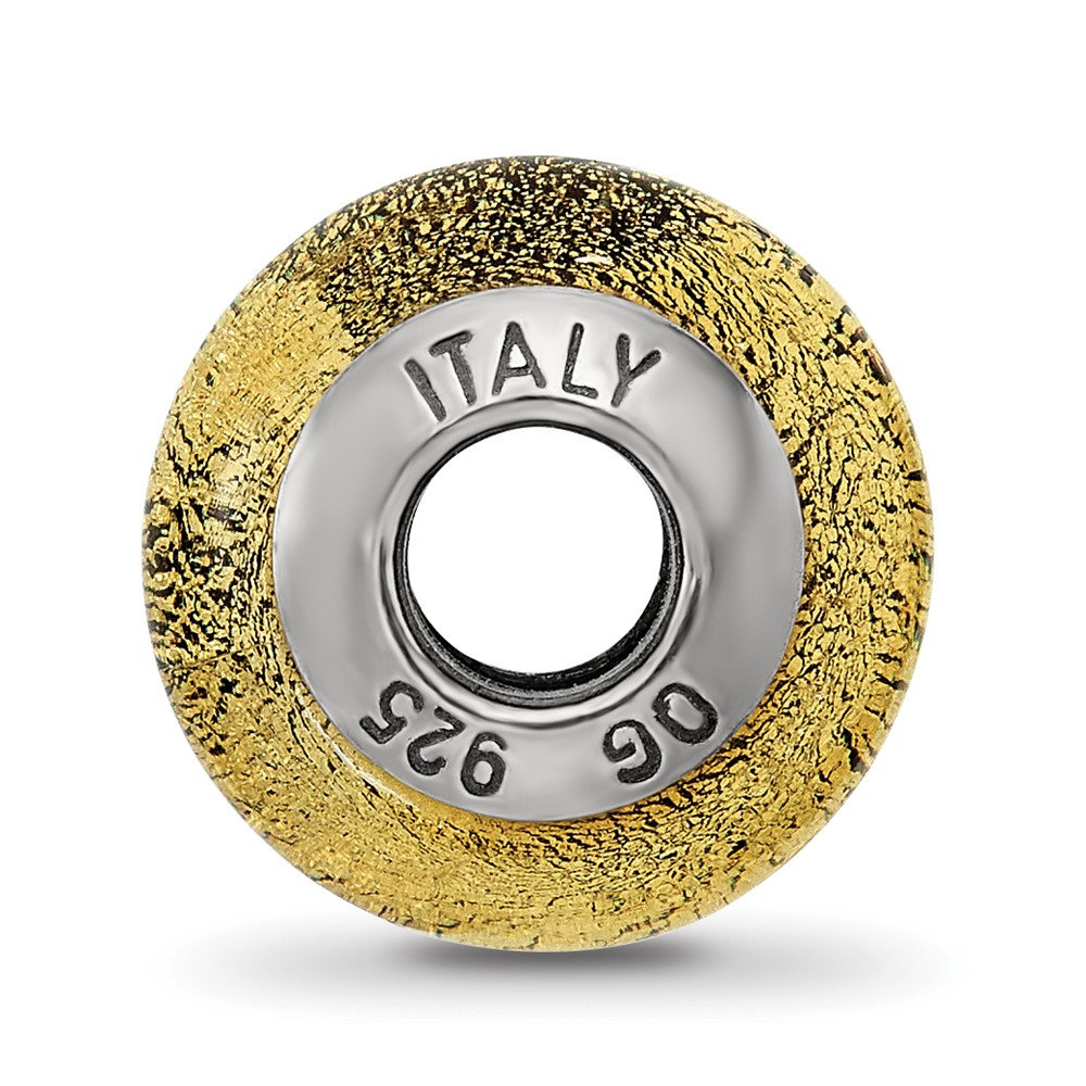 Sterling Silver Reflections Italian Olive w/Silver Glitter Glass Bead