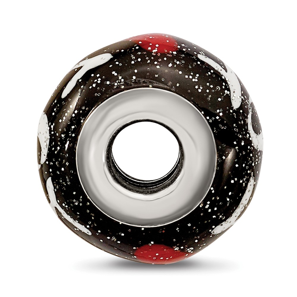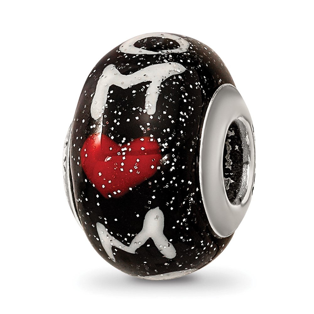 Sterling Silver Reflections Mom w/Hearts Black Italian Glass Bead
