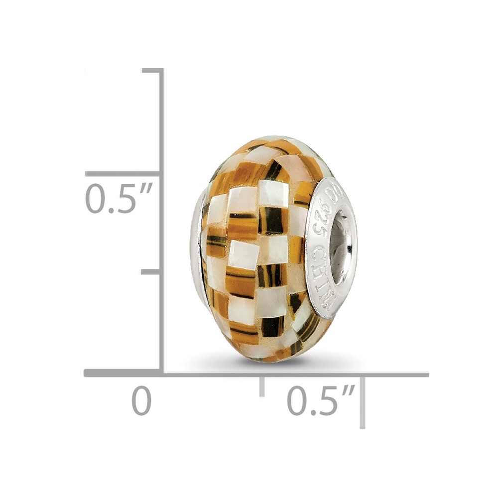 Sterling Silver Reflections Tiger's Eye and White MOP Mosaic Bead
