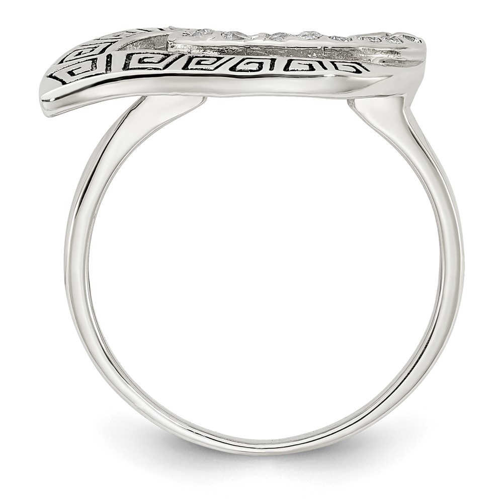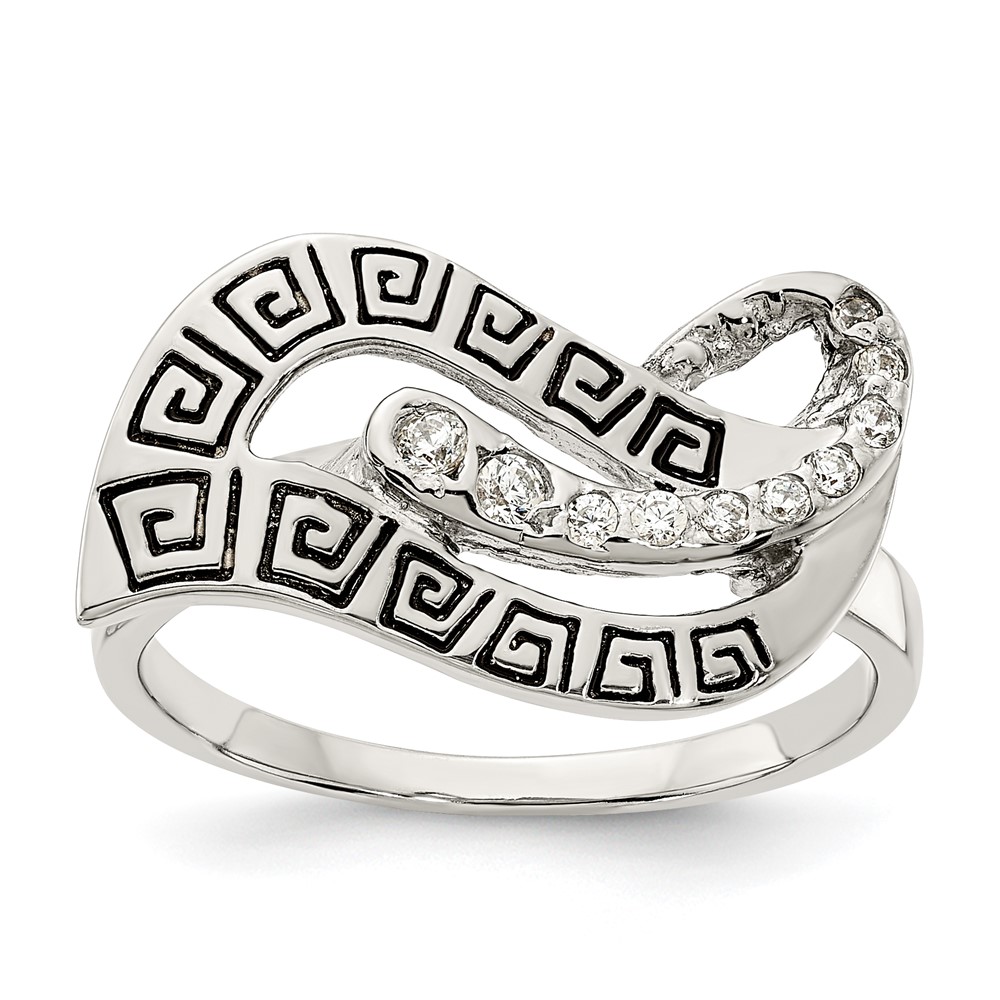 Sterling Silver Polished CZ Enameled Greek Key Ring