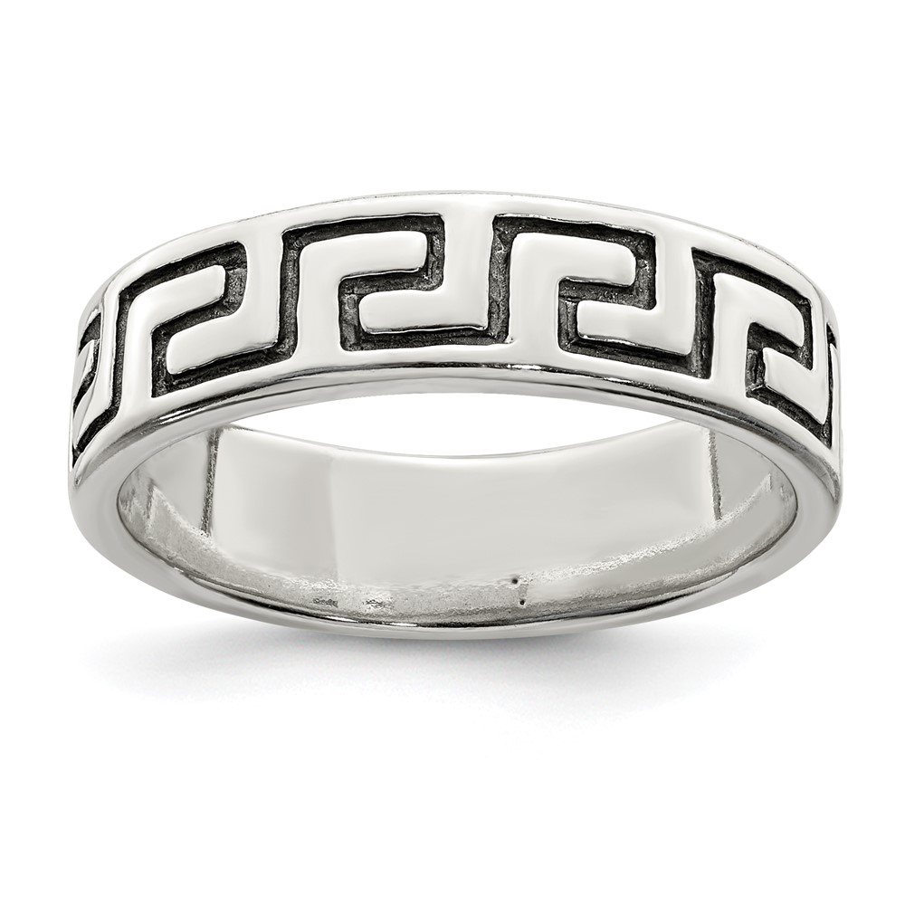 Sterling Silver Antiqued Greek Key Ring