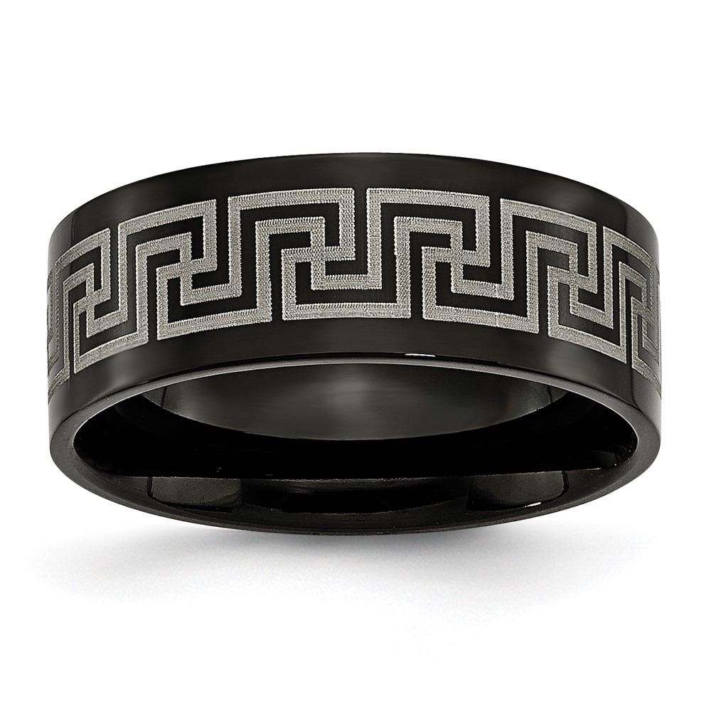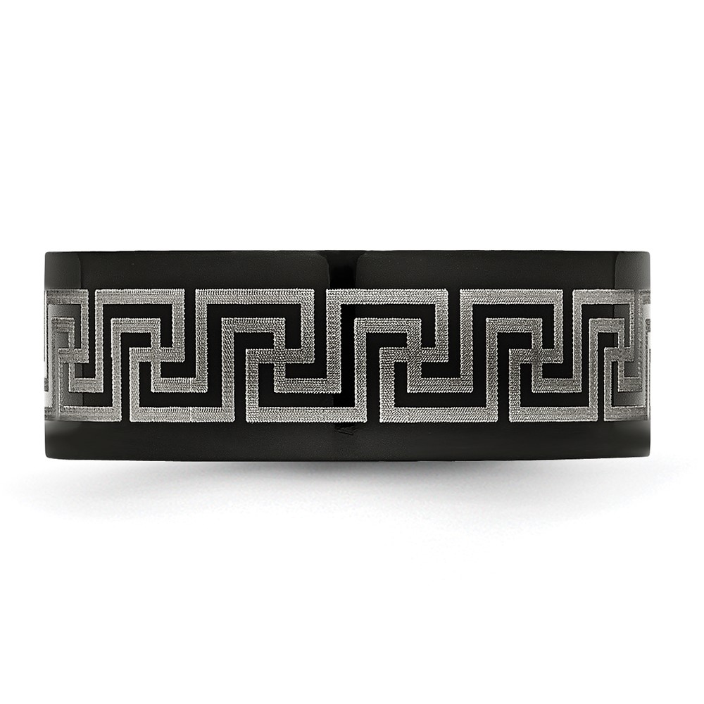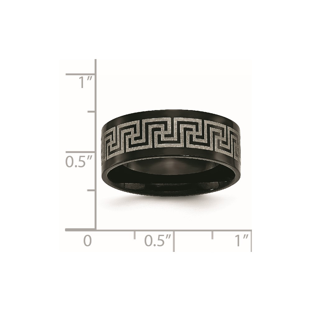 Titanium Black IP-plated Greek Key Laser Etched 8mm Brushed/Polished Band