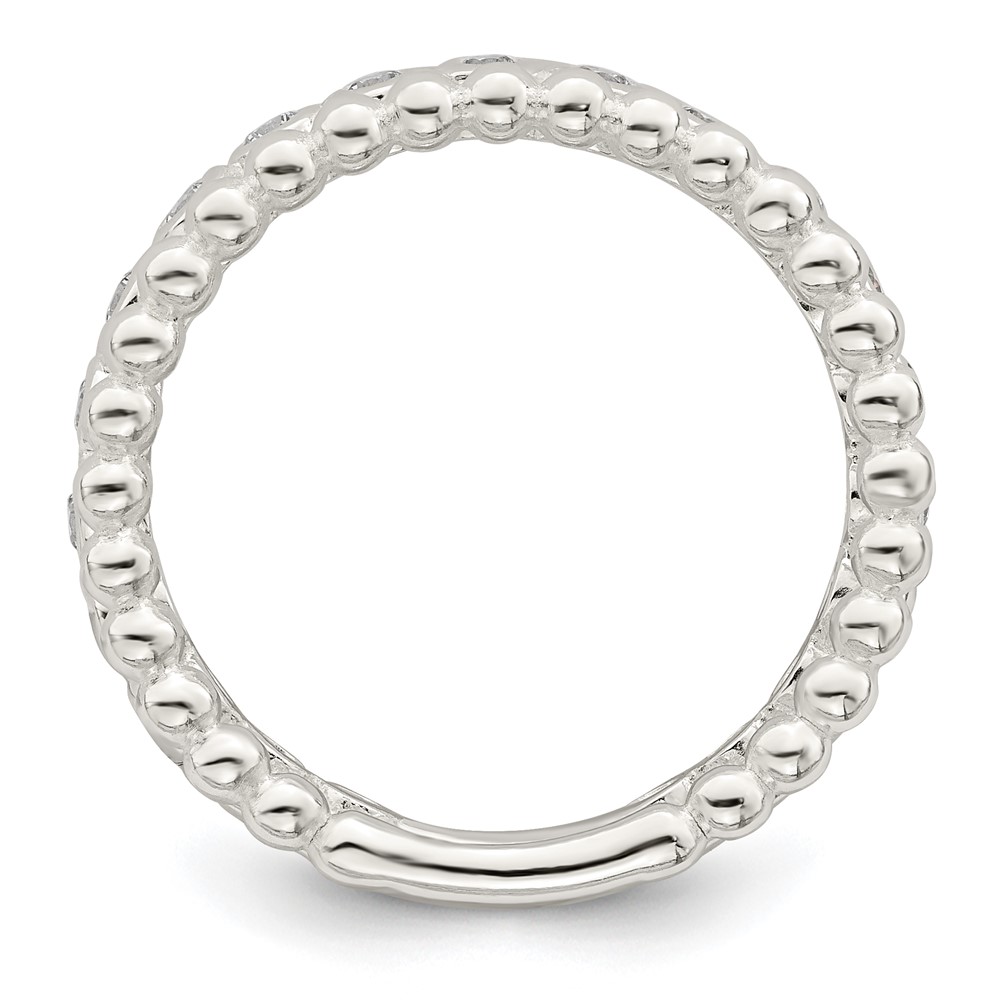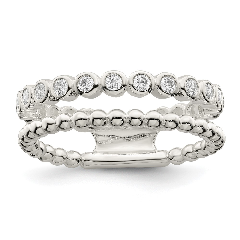 Sterling Silver Polished CZ Beaded Double Fancy Ring