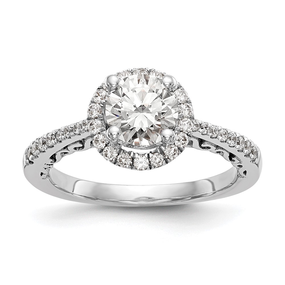 14K White Gold Round Diamond Semi-Mount Halo Engagement Ring