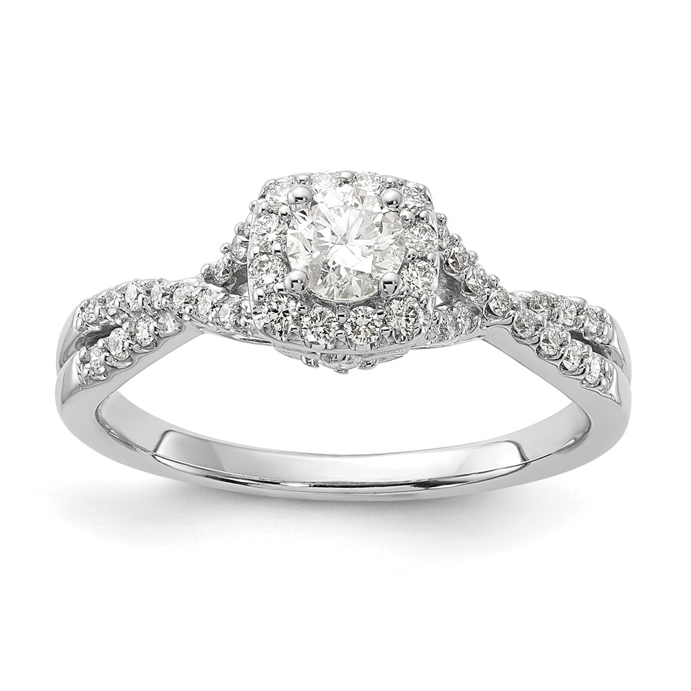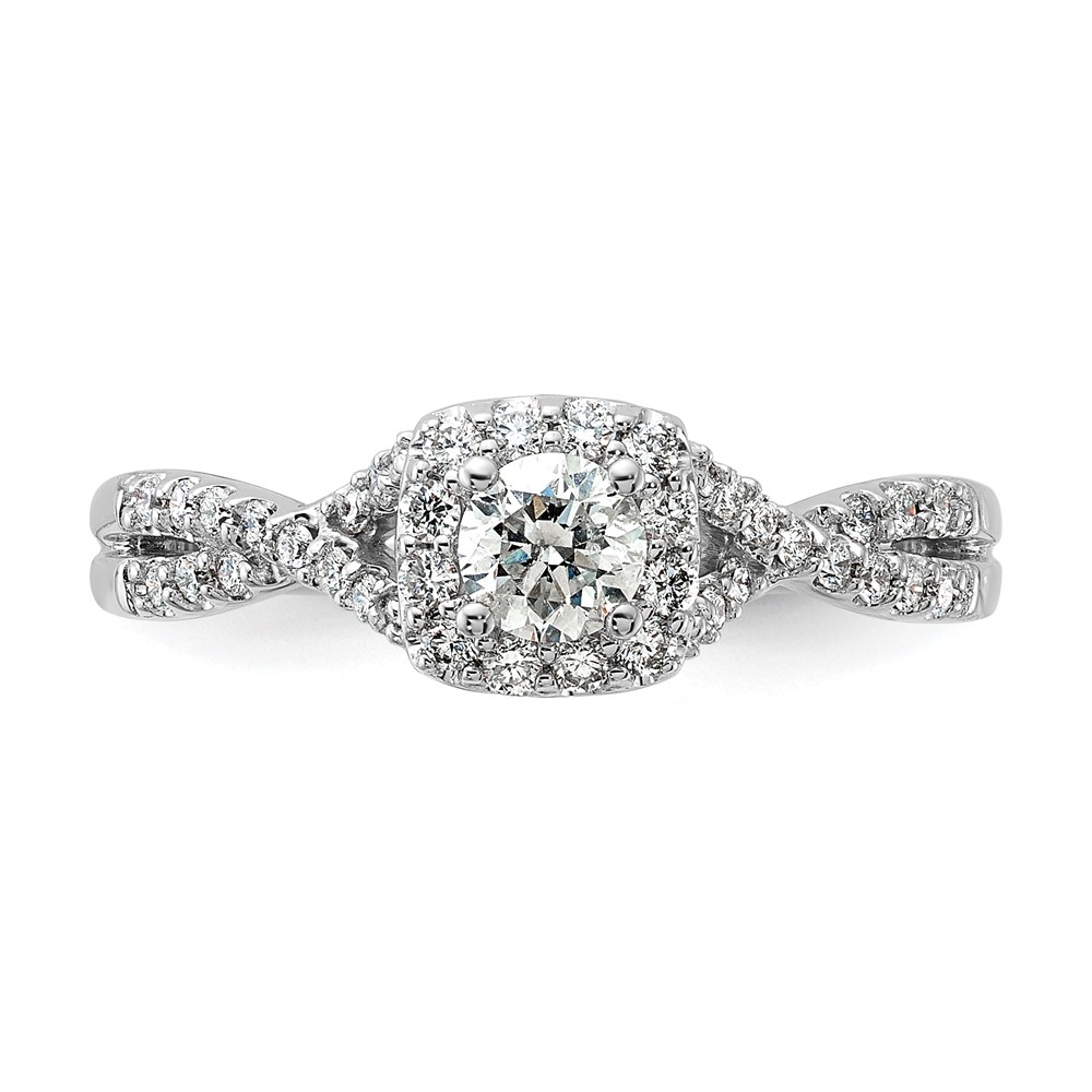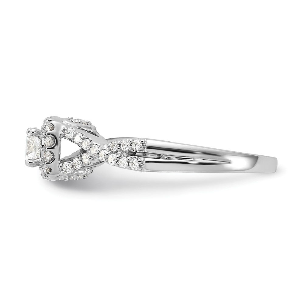 14k White Gold Polished Diamond Semi-Mount Halo Twisted Engagement Ring