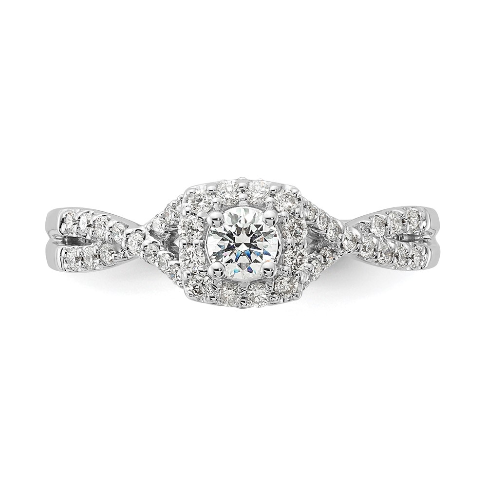 14k White Gold Polished Diamond & CZ Center Halo Twisted Engagement Ring