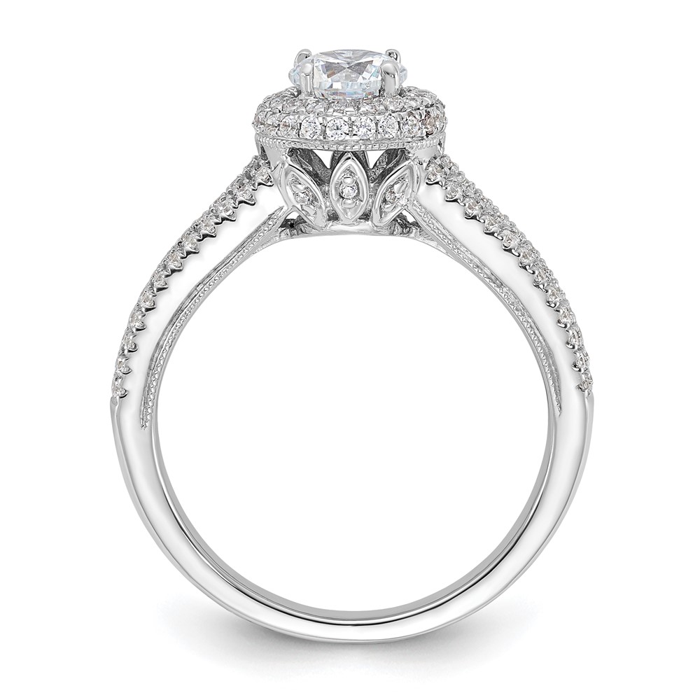 Sterling Silver Polished CZ Round Halo Engagement Ring
