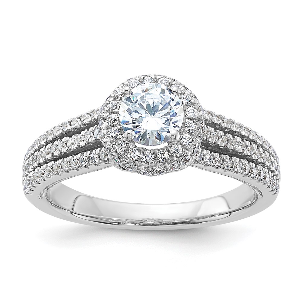 14k White Gold 3/4 carat Lab Grown Diamond VS/SI+ G+ Round Complete Halo Engagement Ring
