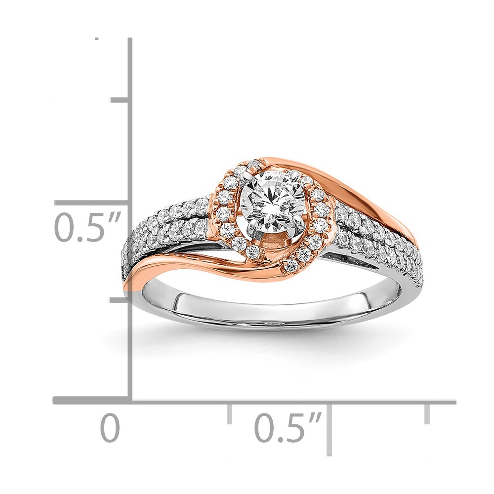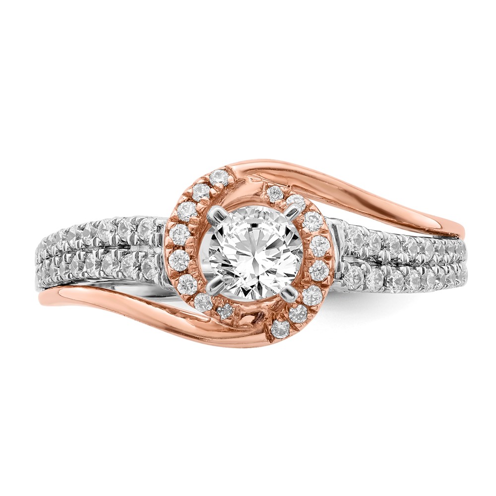 Sterling Silver w/Rose Plate CZ Fancy Halo Semi-mount Engagement Ring