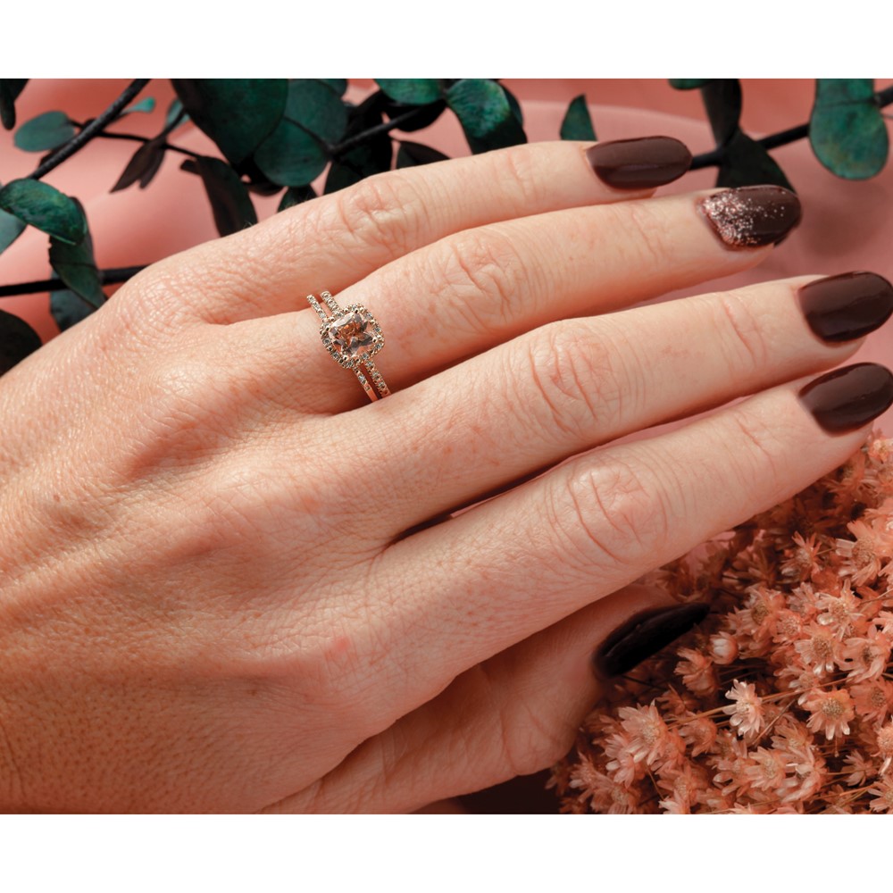 Blooming Bridal 14k Rose Gold Halo 6.00mm Cushion-cut Morganite and 1/15 carat Diamond Complete Engagement Ring