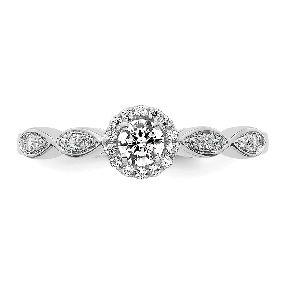 14k White Gold Polished Complete Diamond Round Halo Engagement Ring