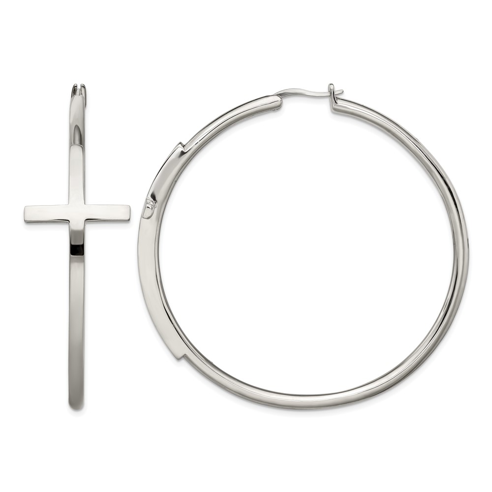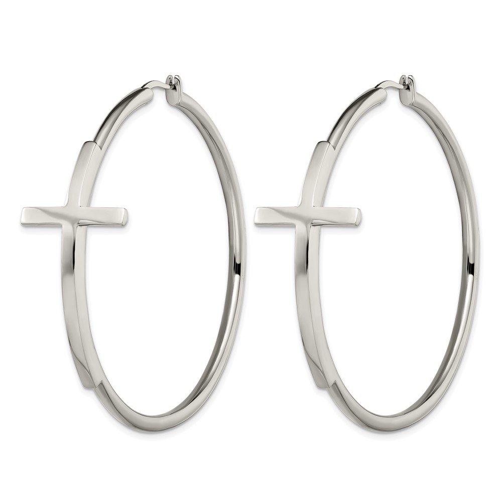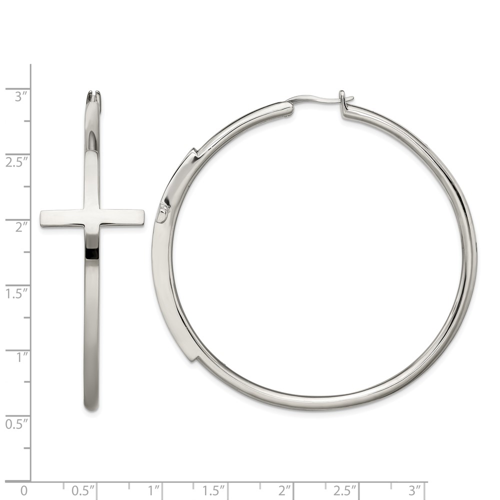 Chisel Stainless Steel Polished Large Cross Hoop Earrings