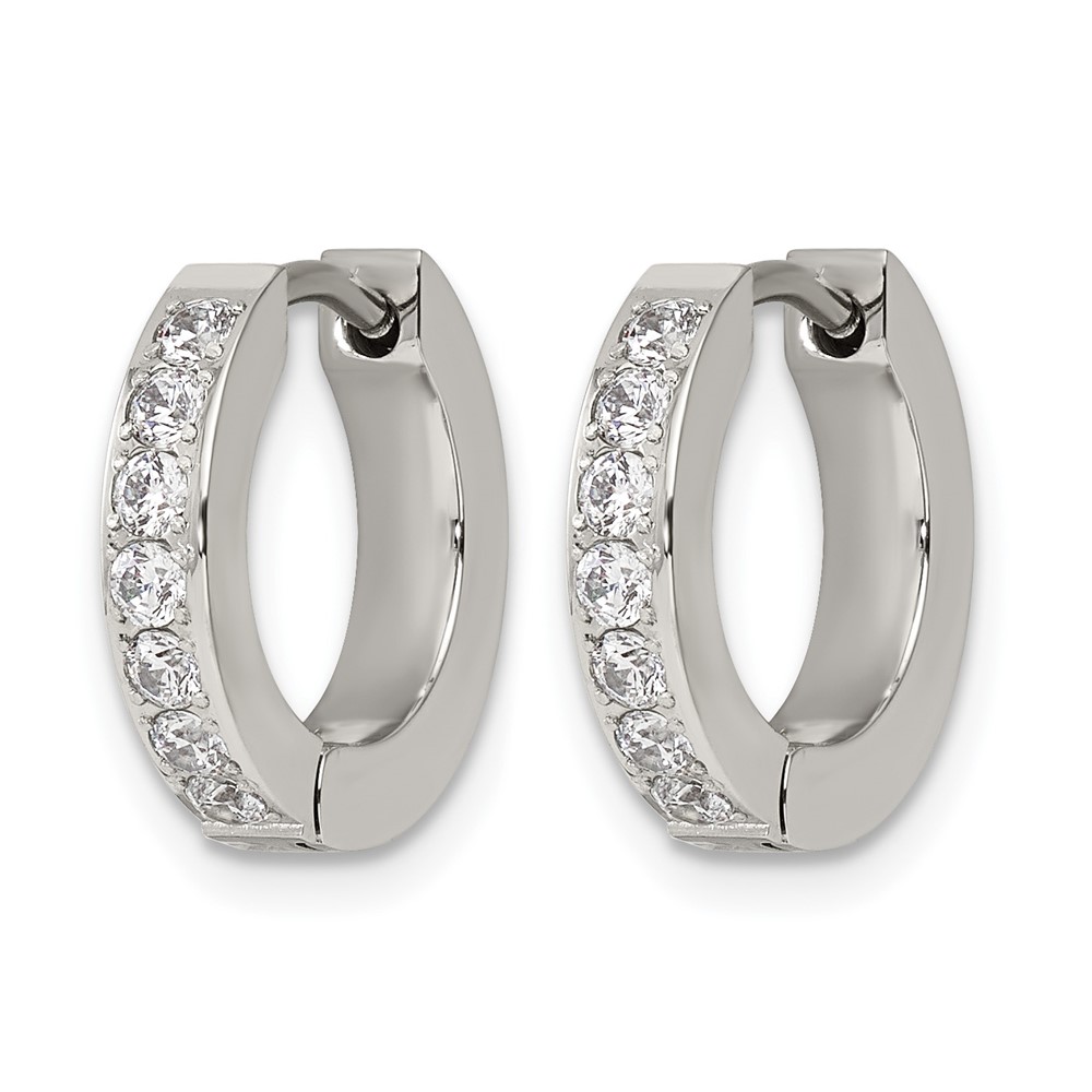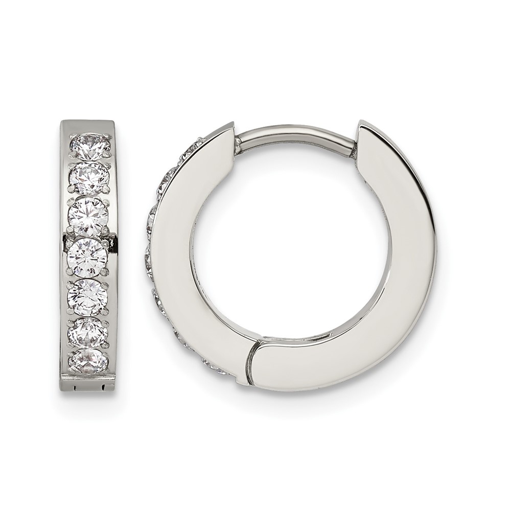 Chisel Stainless Steel Polished with 1 Row of CZ 2.3mm Hinged Hoop Earrings