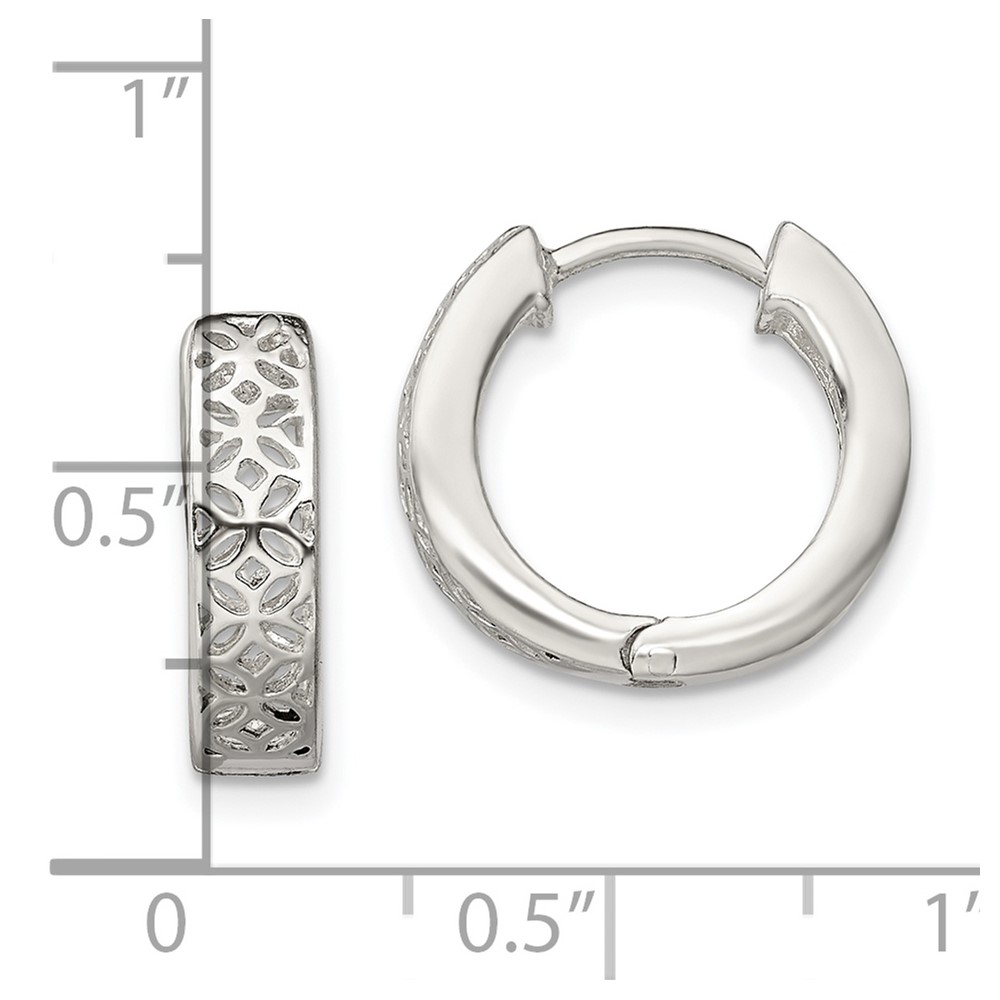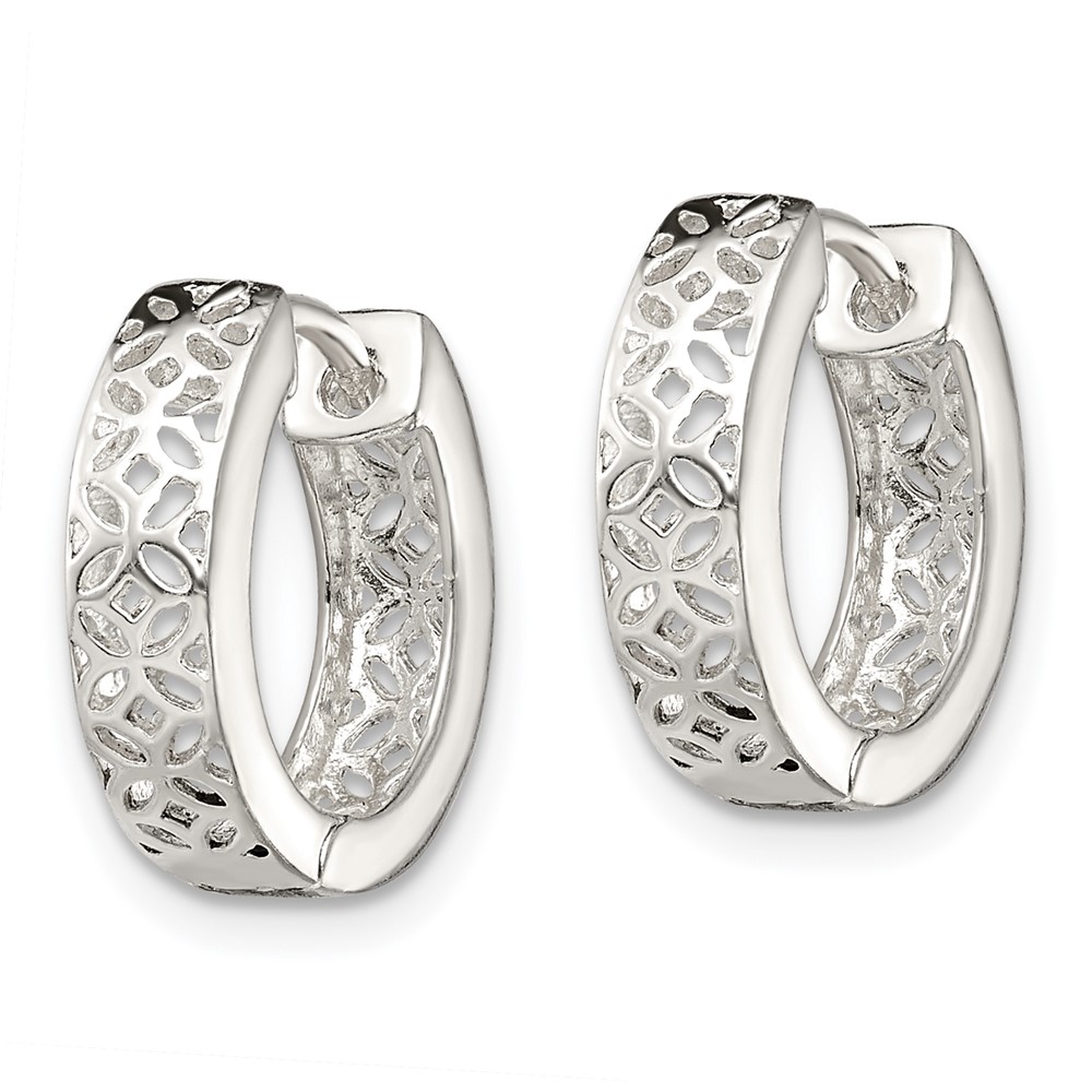 Sterling Silver Polished Cut-out Design Hinged Hoop Earrings