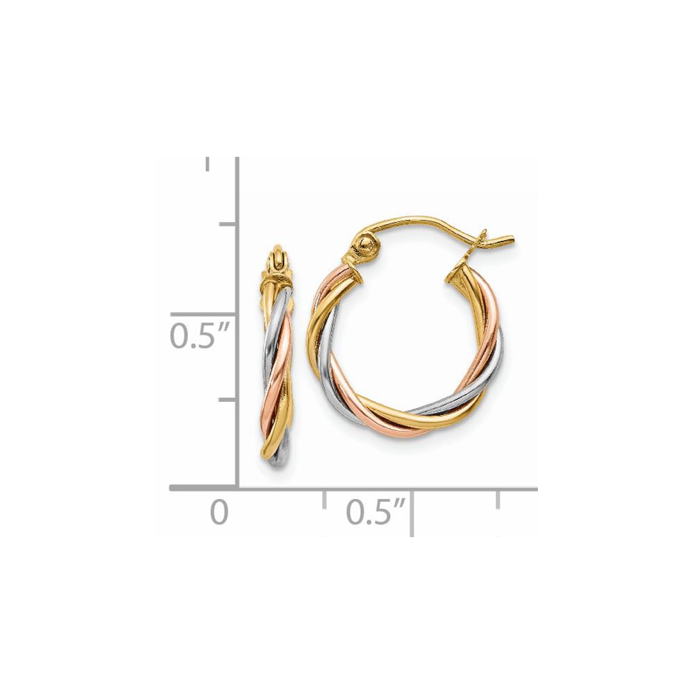 2.5mm Gold Tri-color Twisted Tube Hoop Earrings