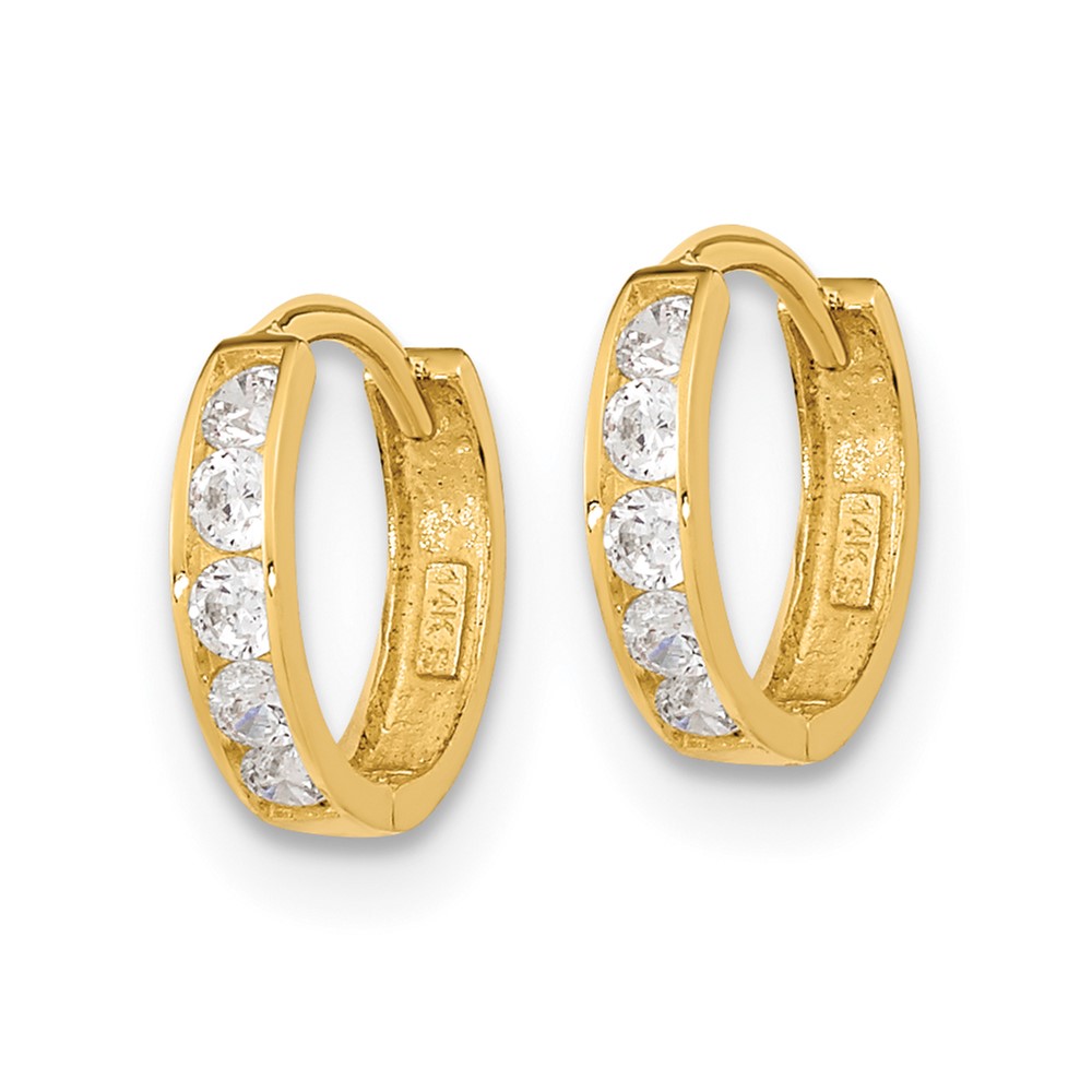 14k Madi K CZ 2x9mm Hinged Hoop Earrings