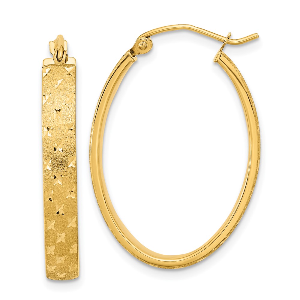 4mm Gold Diamond-cut Oval Hoop Earrings