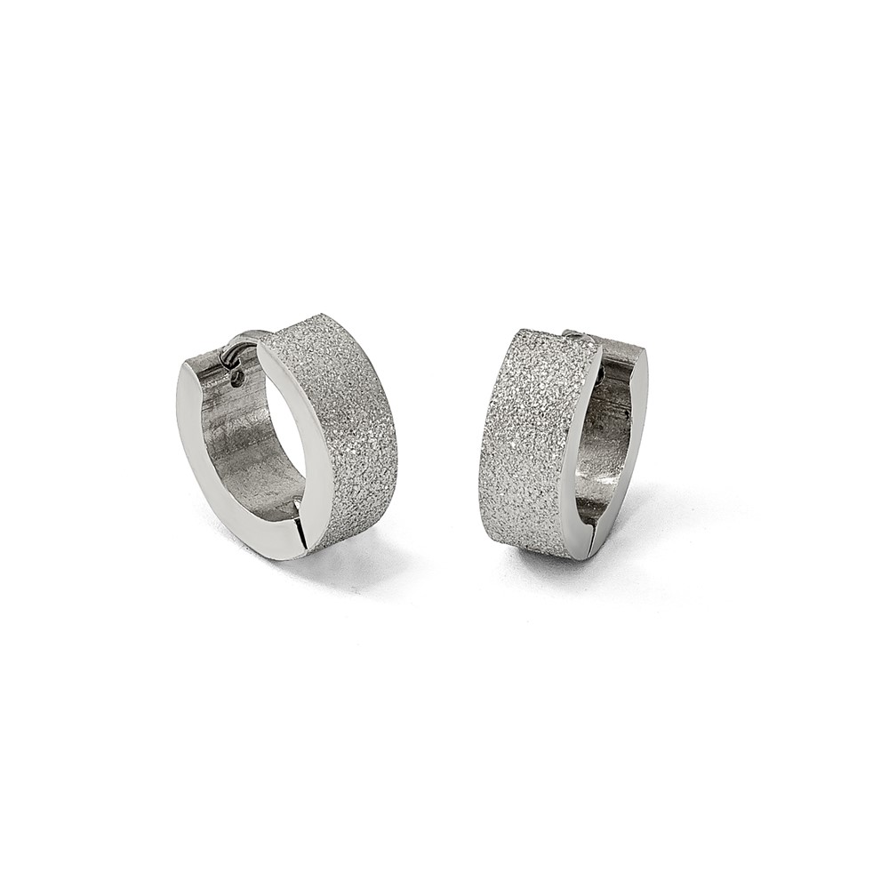 Chisel Stainless Steel Polished and Sandblasted 5mm Hinged Hoop Earrings