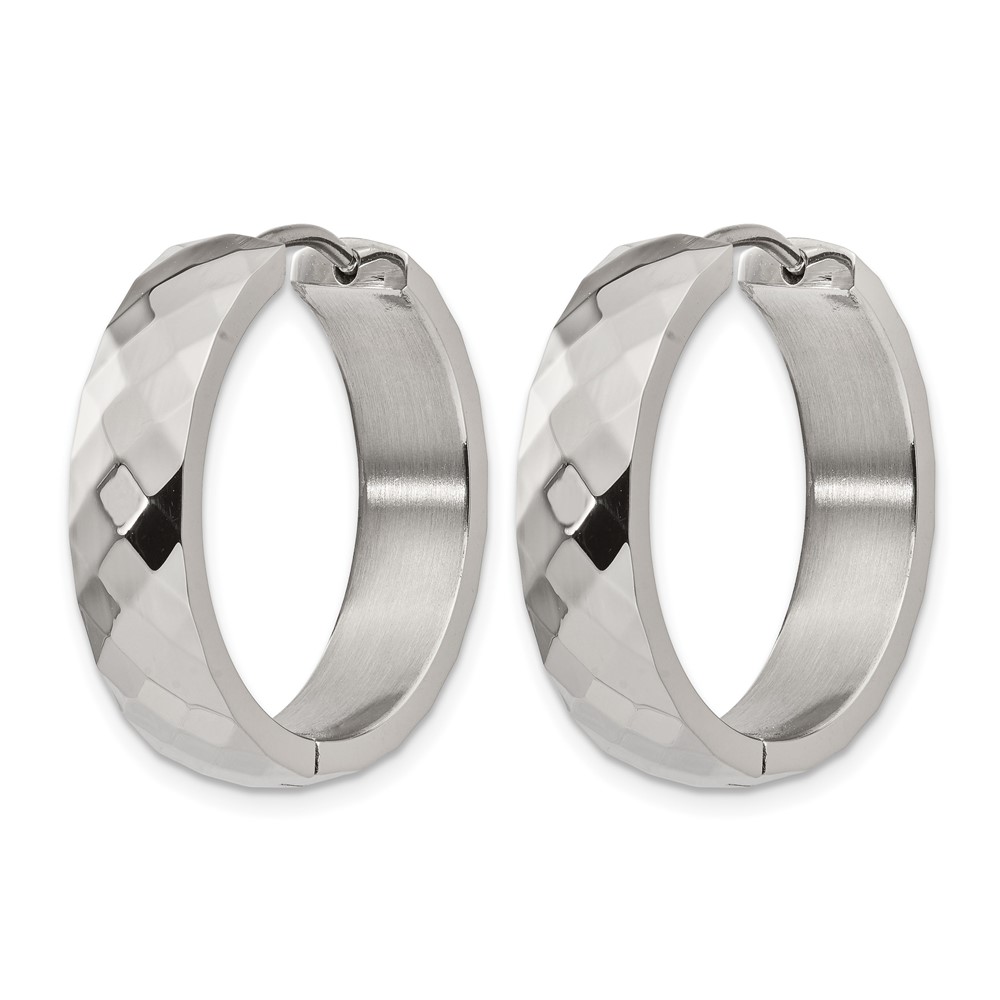 Chisel Stainless Steel Polished and Textured 6mm Hinged Hoop Earrings