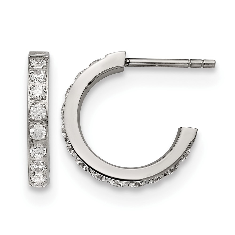 Chisel Stainless Steel Polished with CZ Post Hoop Earrings
