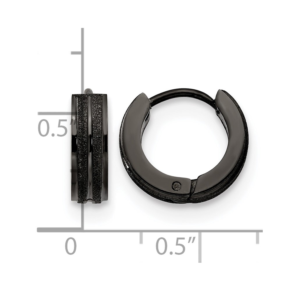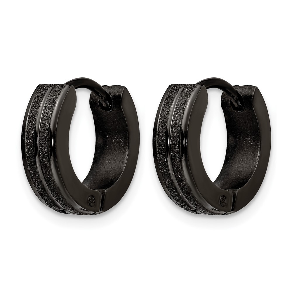 Chisel Stainless Steel Polished Black IP-plated Laser cut 4mm Hinged Hoop Earrings