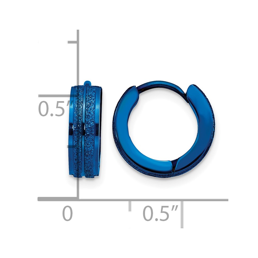 Chisel Stainless Steel Polished Blue IP-plated Laser cut 4mm Hinged Hoop Earrings