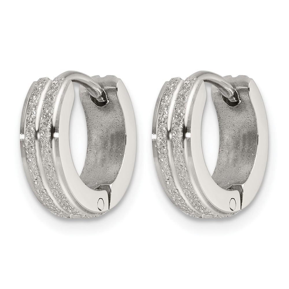 Chisel Stainless Steel Polished Laser cut 4mm Hinged Hoop Earrings
