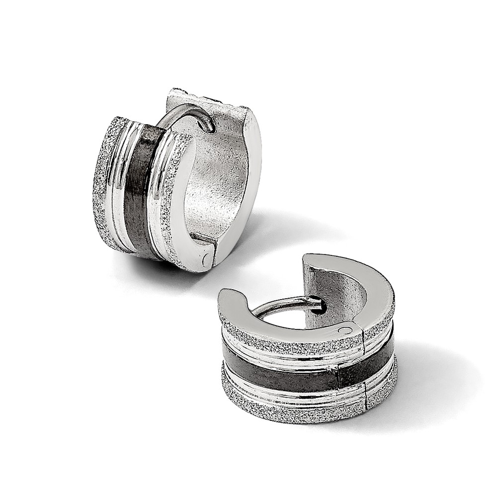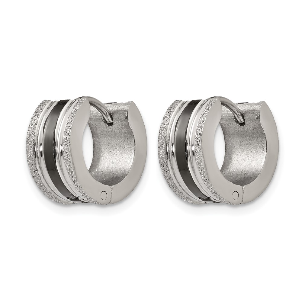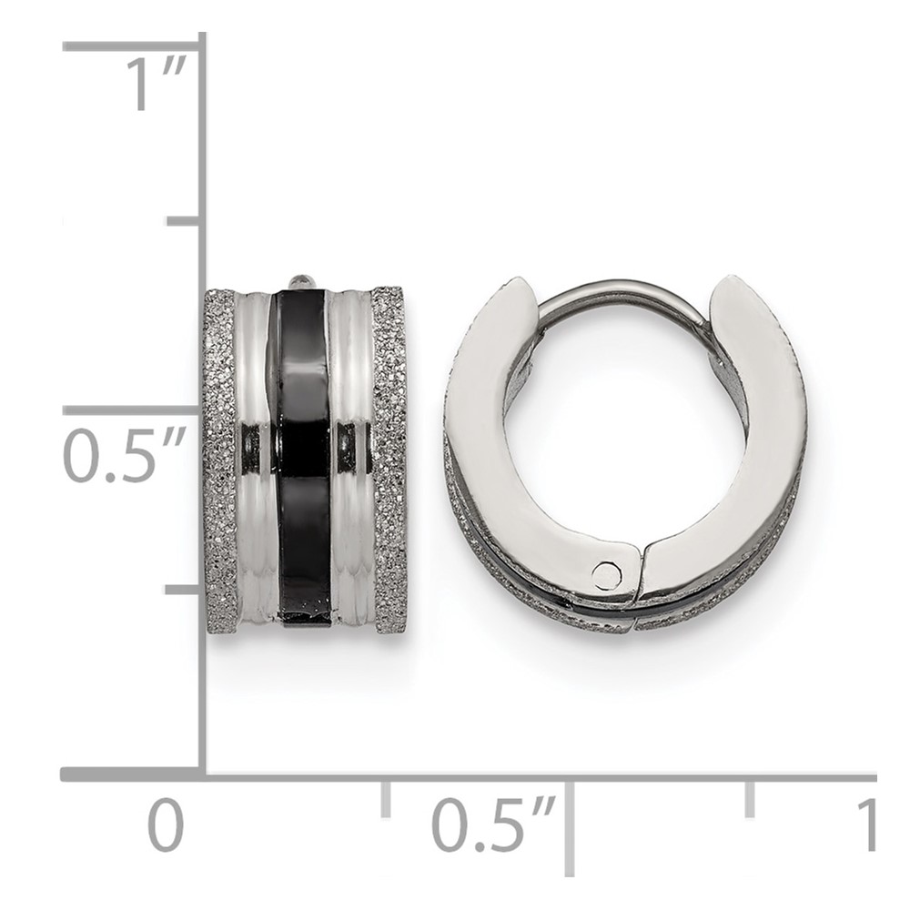 Chisel Stainless Steel Polished Black IP-Plated Laser cut 7mm Hoop Earrings