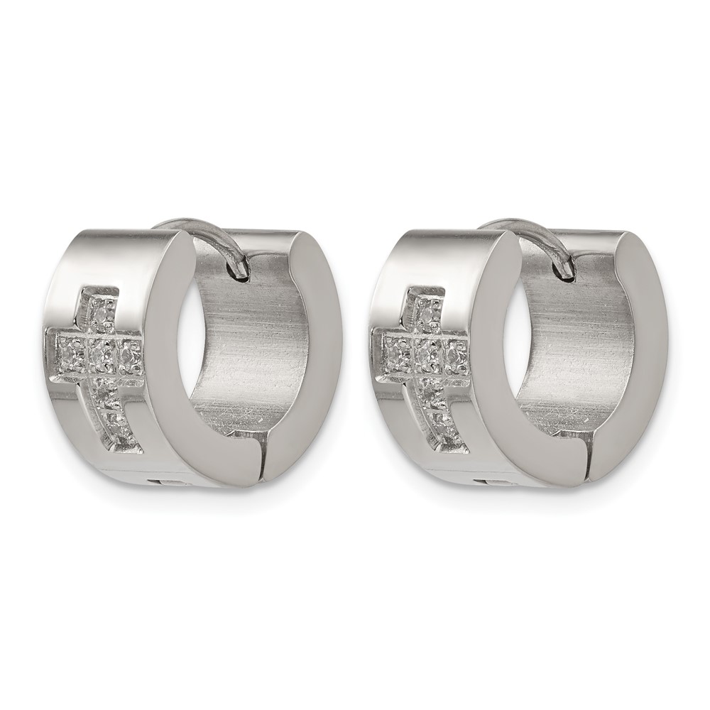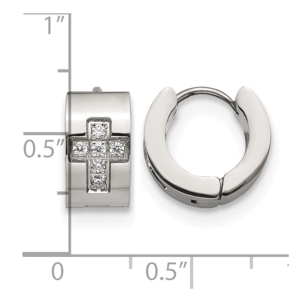 Chisel Stainless Steel Polished with CZ Cross 7mm Hinged Hoop Earrings