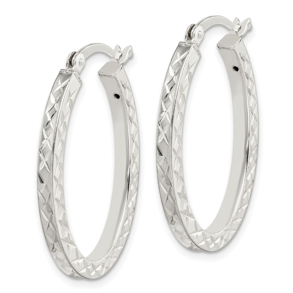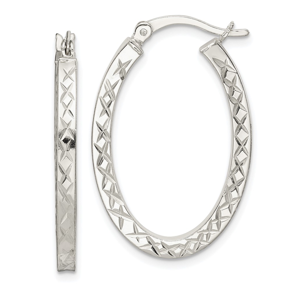 Sterling Silver Diamond-cut Oval Hoop Earrings