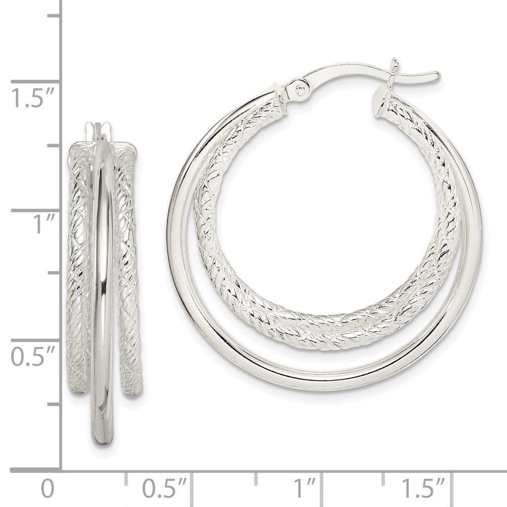 Sterling Silver Textured and Polished Triple Hoop Earrings