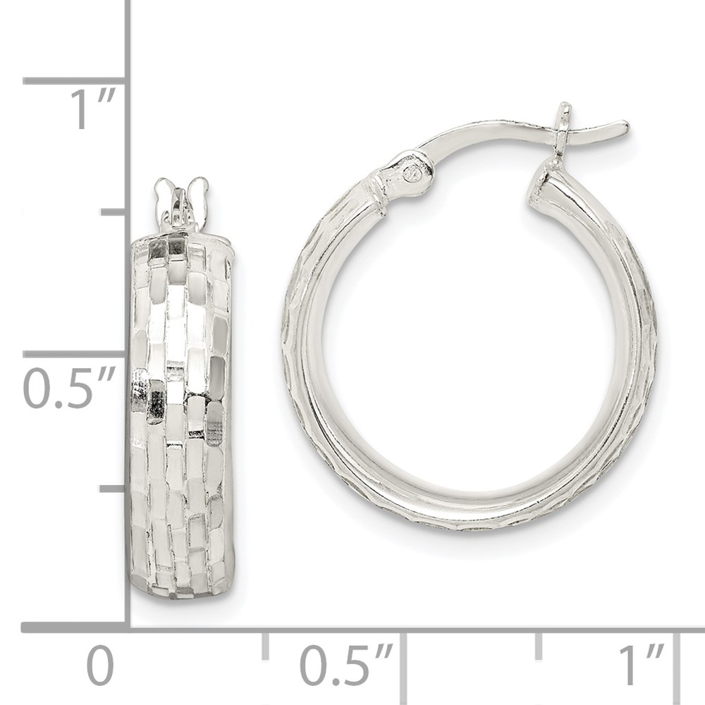 Sterling Silver Polished & Textured 5mm Round Hoop Earrings