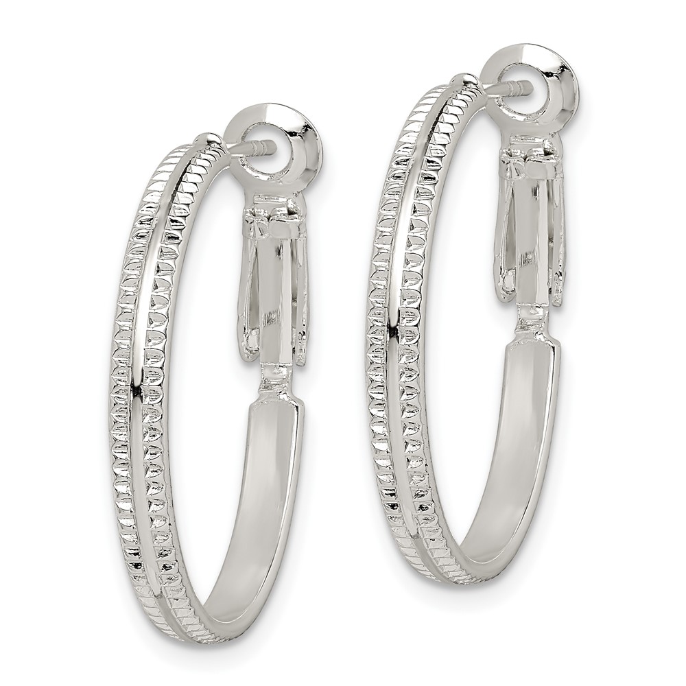 Sterling Silver 2mm Textured Omega Back Hoop Earrings