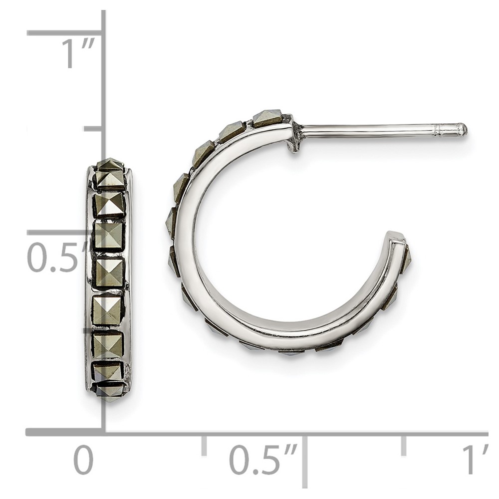 Sterling Silver Square Marcasite 15x3.5 Hoop Post Earrings