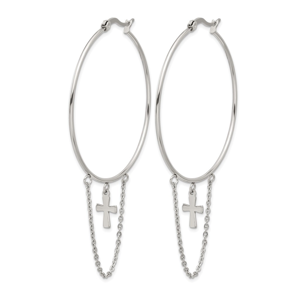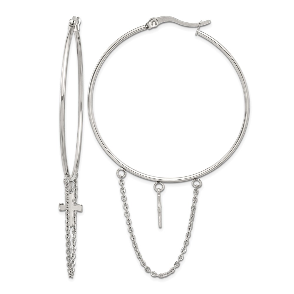 Chisel Stainless Steel Polished Chain and Cross Dangle Hoop Earrings