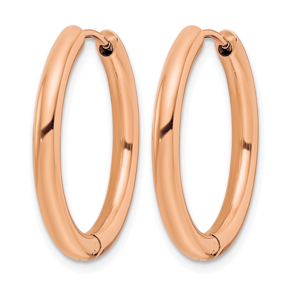 Chisel Stainless Steel Polished Rose IP-plated 3mm Hinged Hoop Earrings