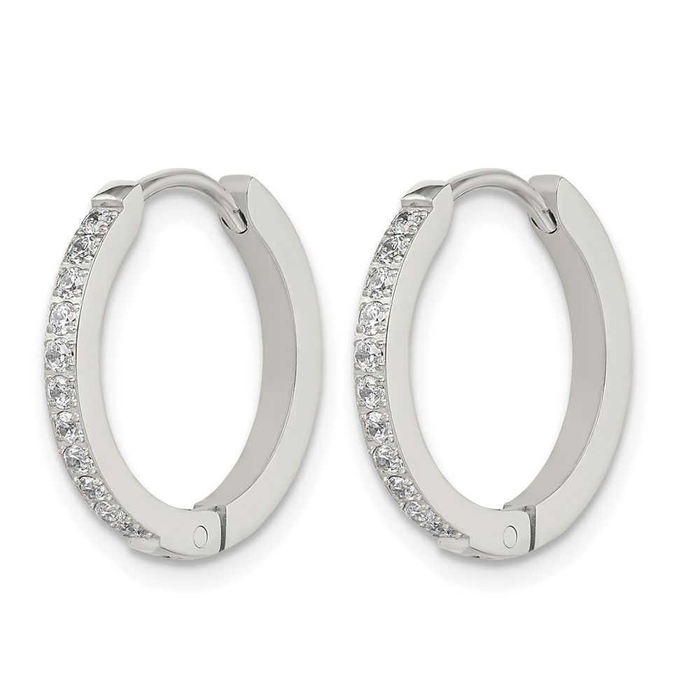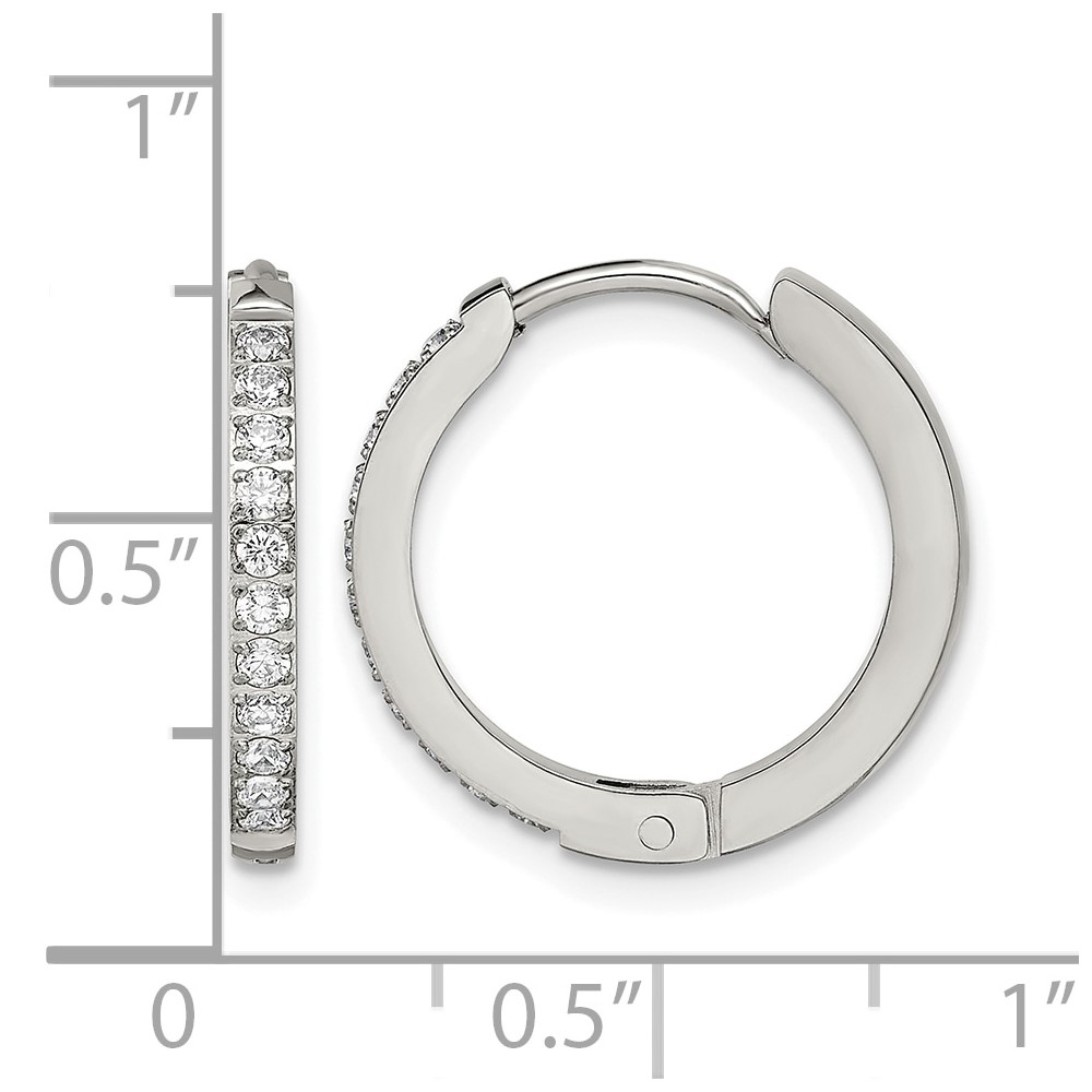 Chisel Stainless Steel Polished with Preciosa Crystal 2mm Hinged Hoop Earrings