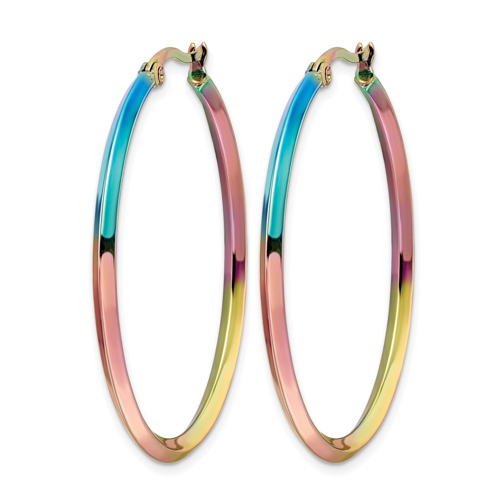 Chisel Stainless Steel Polished Rainbow IP-plated 2.5mm Hoop Earrings