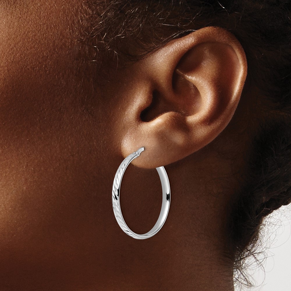 Leslie's Sterling Silver Polished and Diamond-cut 3.00mm Hoop Earrings