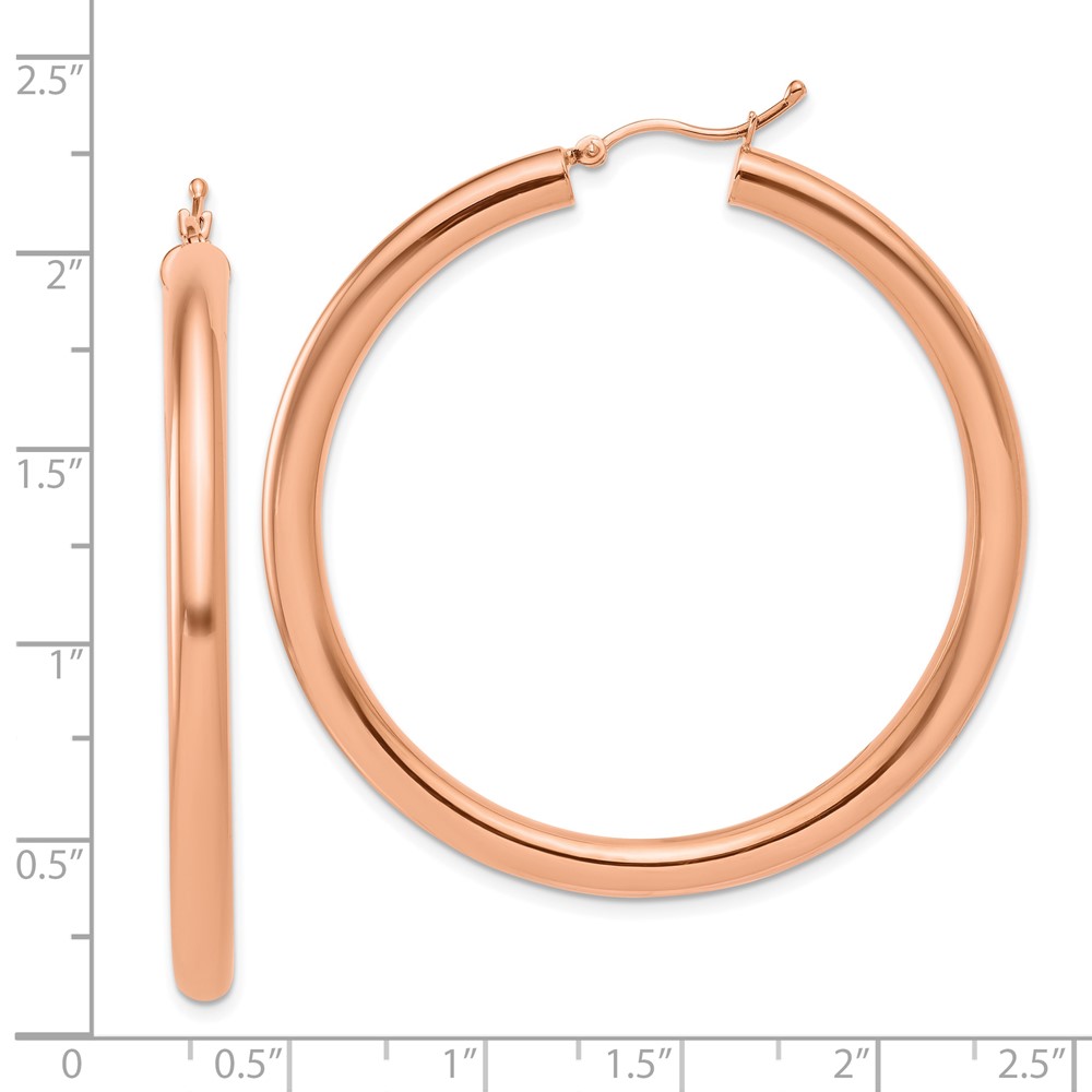 14K Rose Gold Polished 4mm Lightweight Tube Hoop Earrings