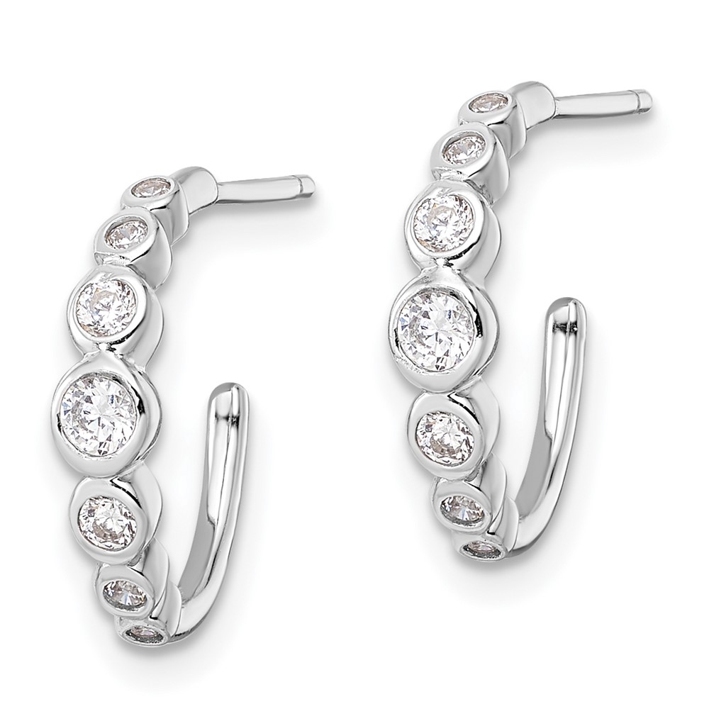 Sterling Silver Rhodium-plated CZ Post Hoop Earrings