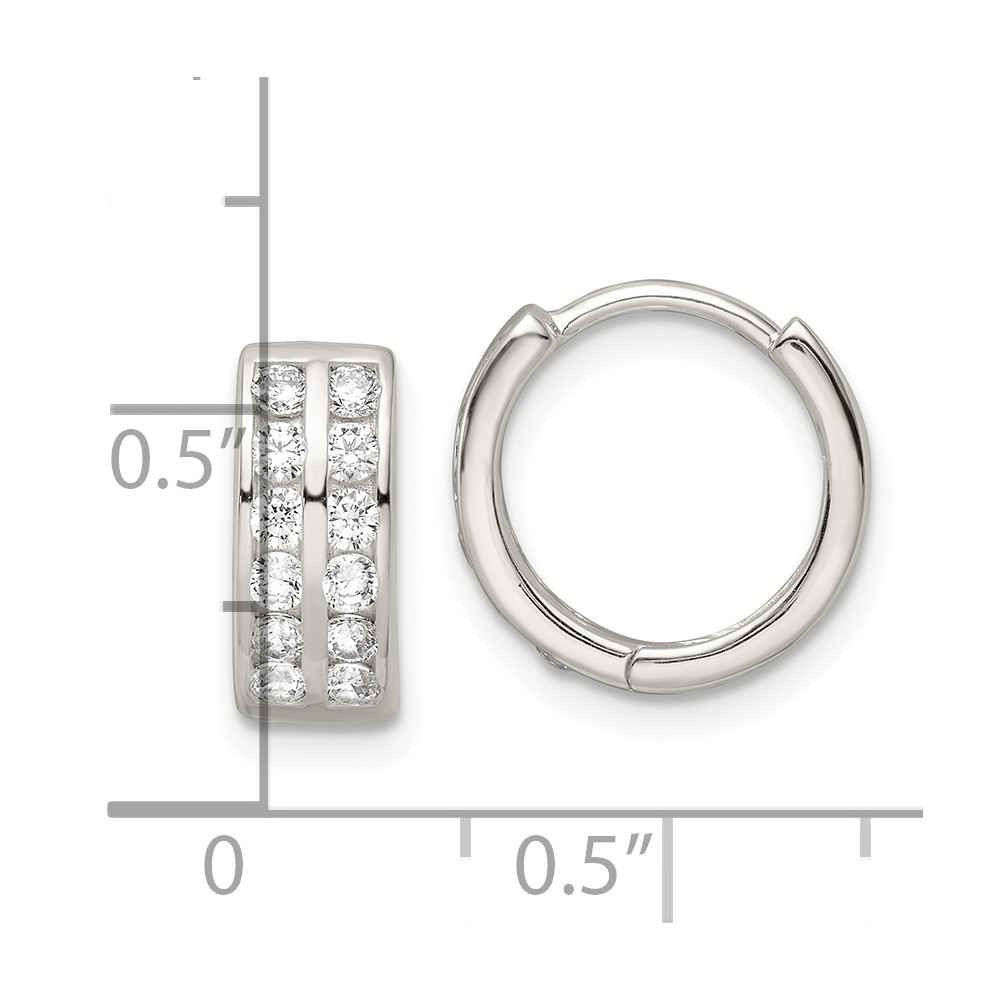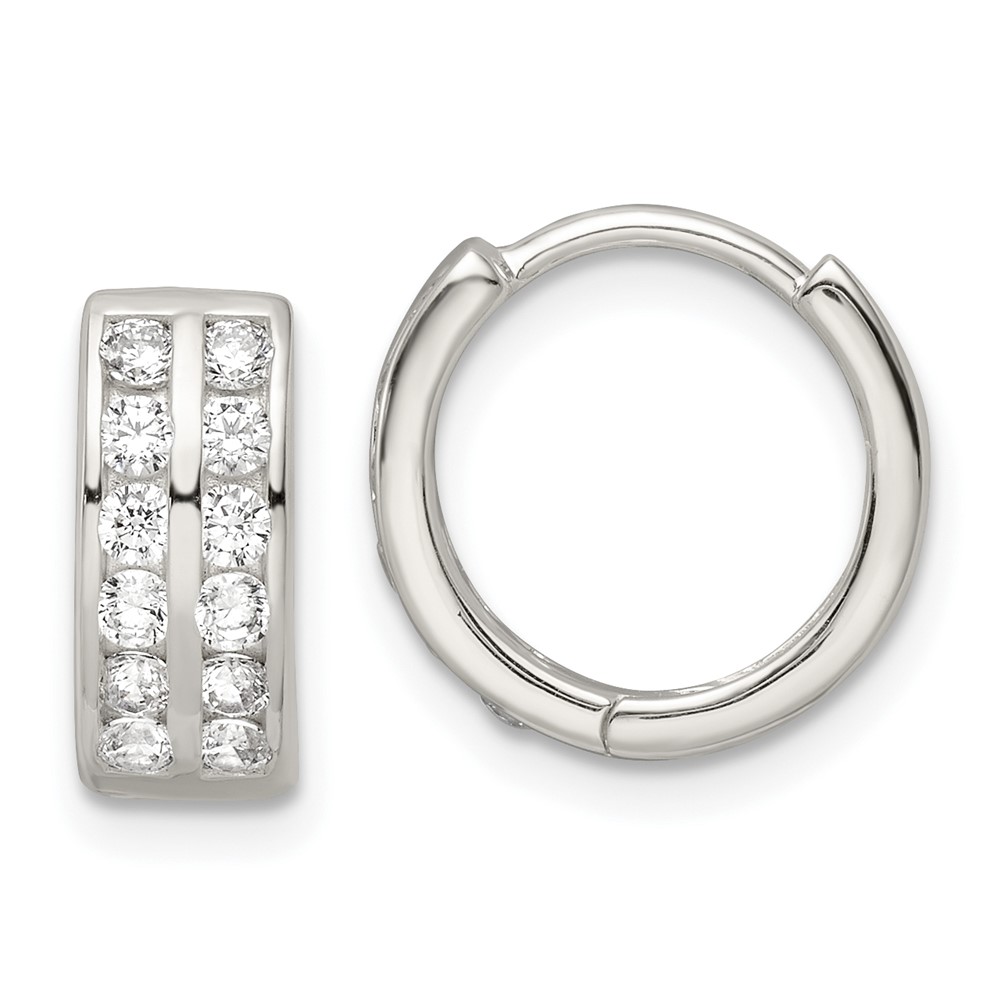 Sterling Silver Polished 2 Row CZ Hinged Hoop Earrings