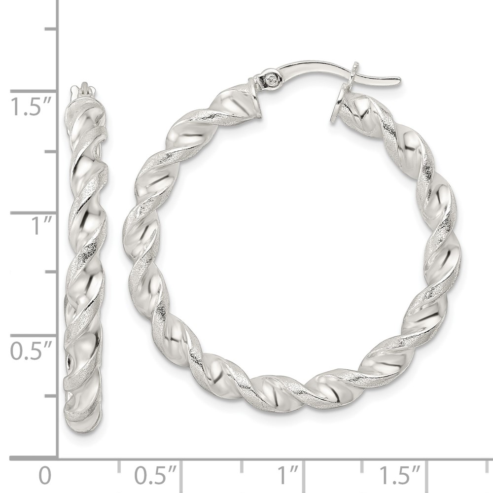 Sterling Silver Polished and Textured Twisted Circle Hoop Earrings