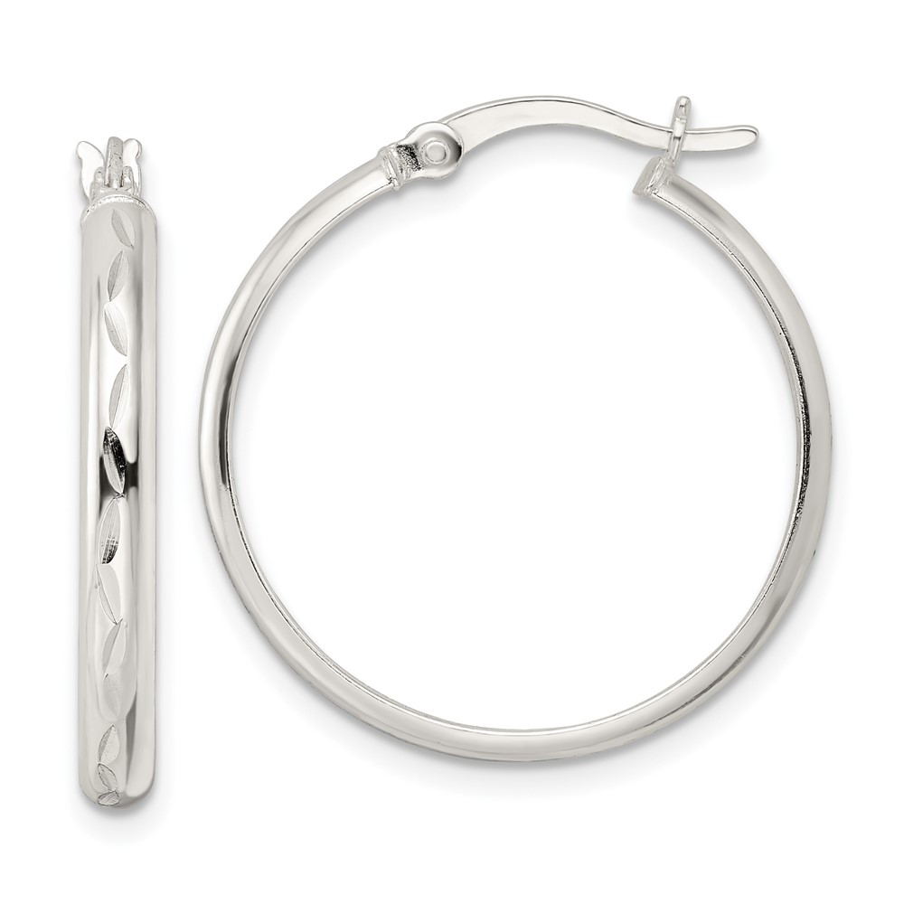 Sterling Silver Polished and Diamond-cut Circle Hoop Earrings