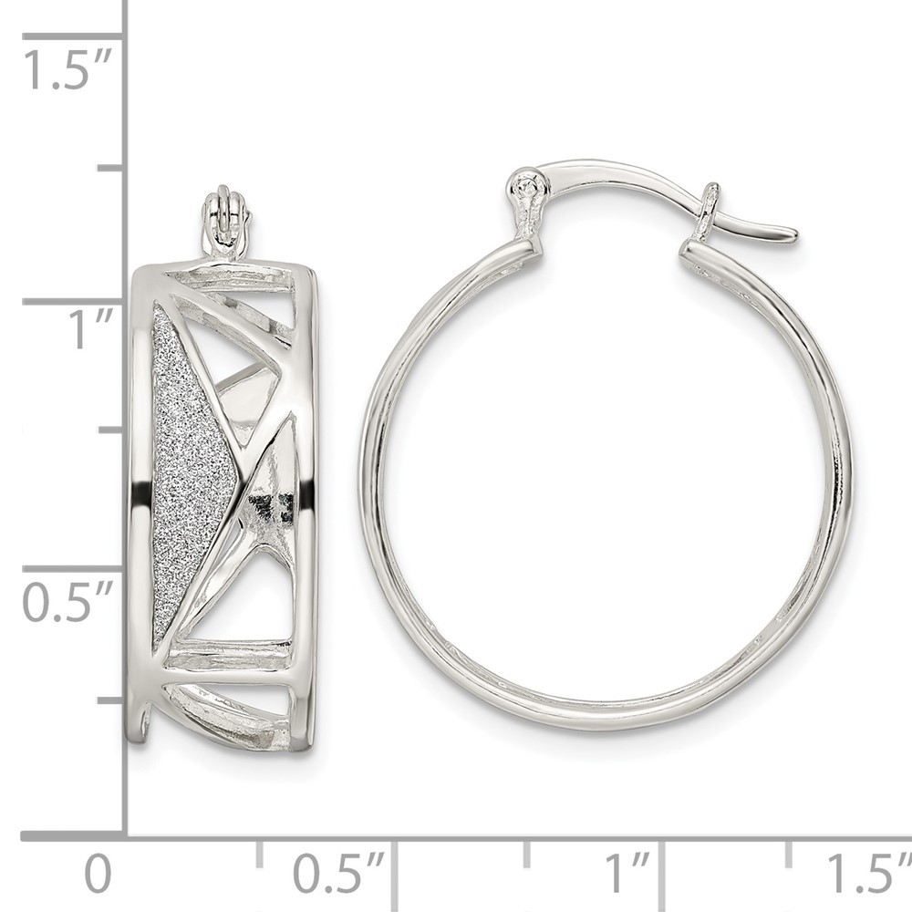 Sterling Silver Polished Fabric Glitter Shapes Hoop Earrings