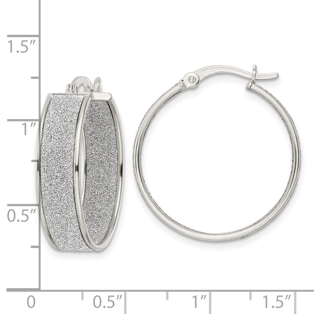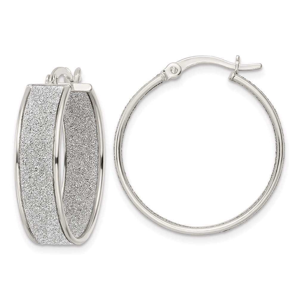 Sterling Silver Polished Fabric Glitter 6.85mm Round Hoop Earrings