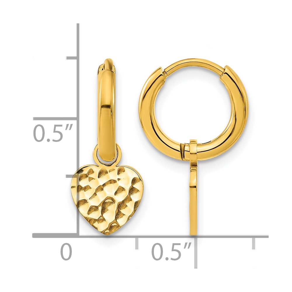 Chisel Stainless Steel Polished Hammered Yellow IP-plated Heart Dangle Hoop Earrings