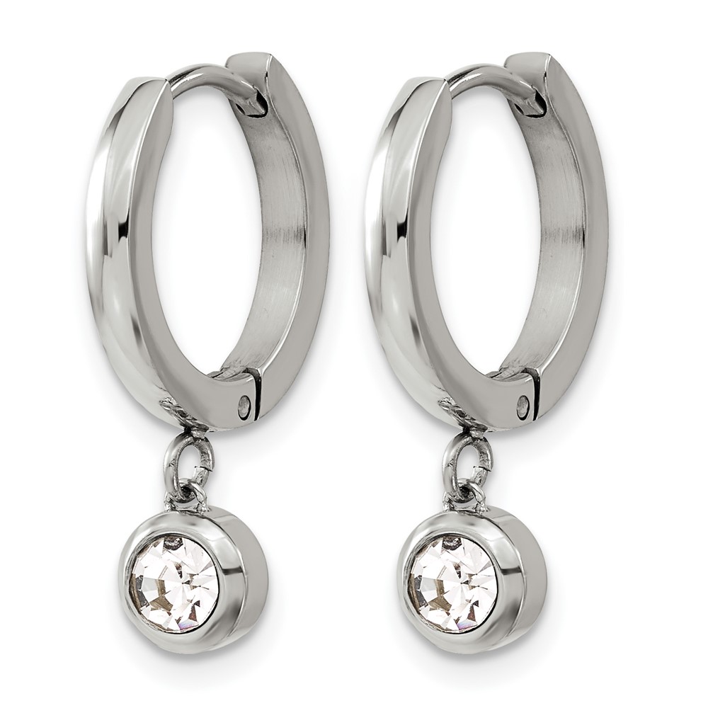 Chisel Stainless Steel Polished with CZ Dangle Hoop Earrings